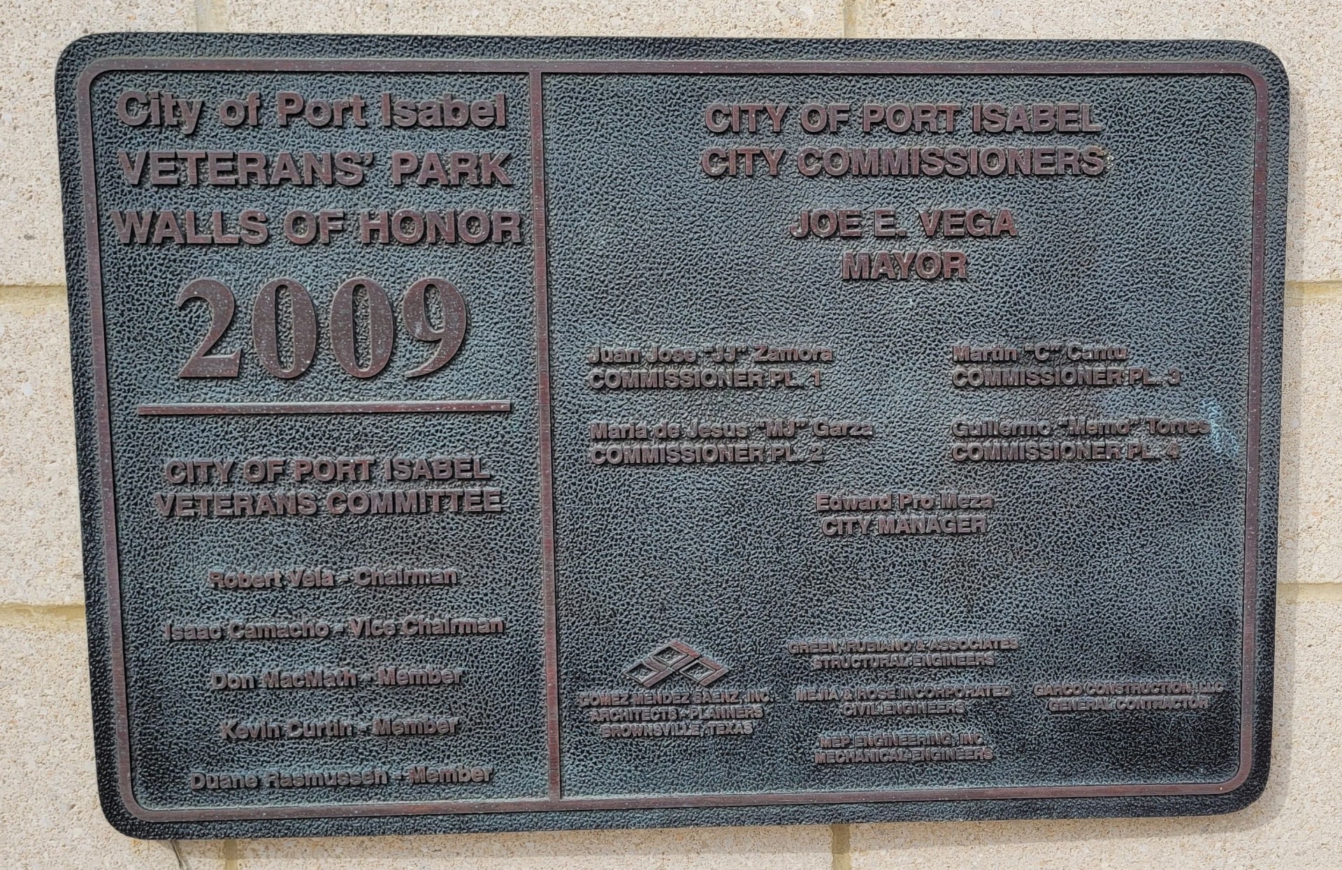 LAGUNA MADRE AREA VETERANS’ PARK WALLS OF HONOR PLAQUE F
