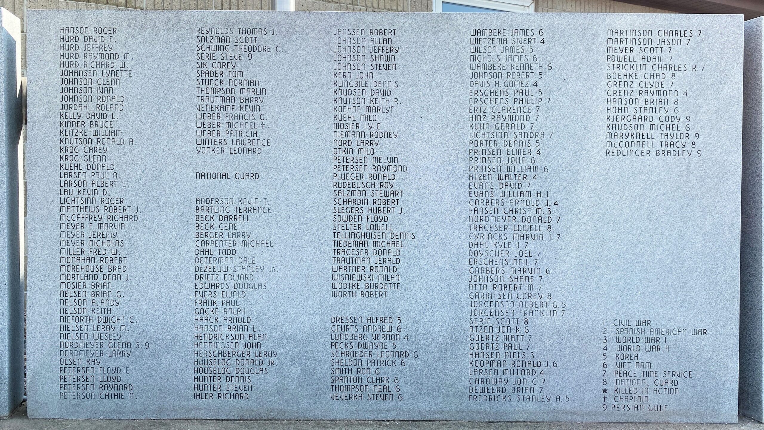 Wars Commemorated: CIVIL WAR THROUGH PERSIAN GULF WAR