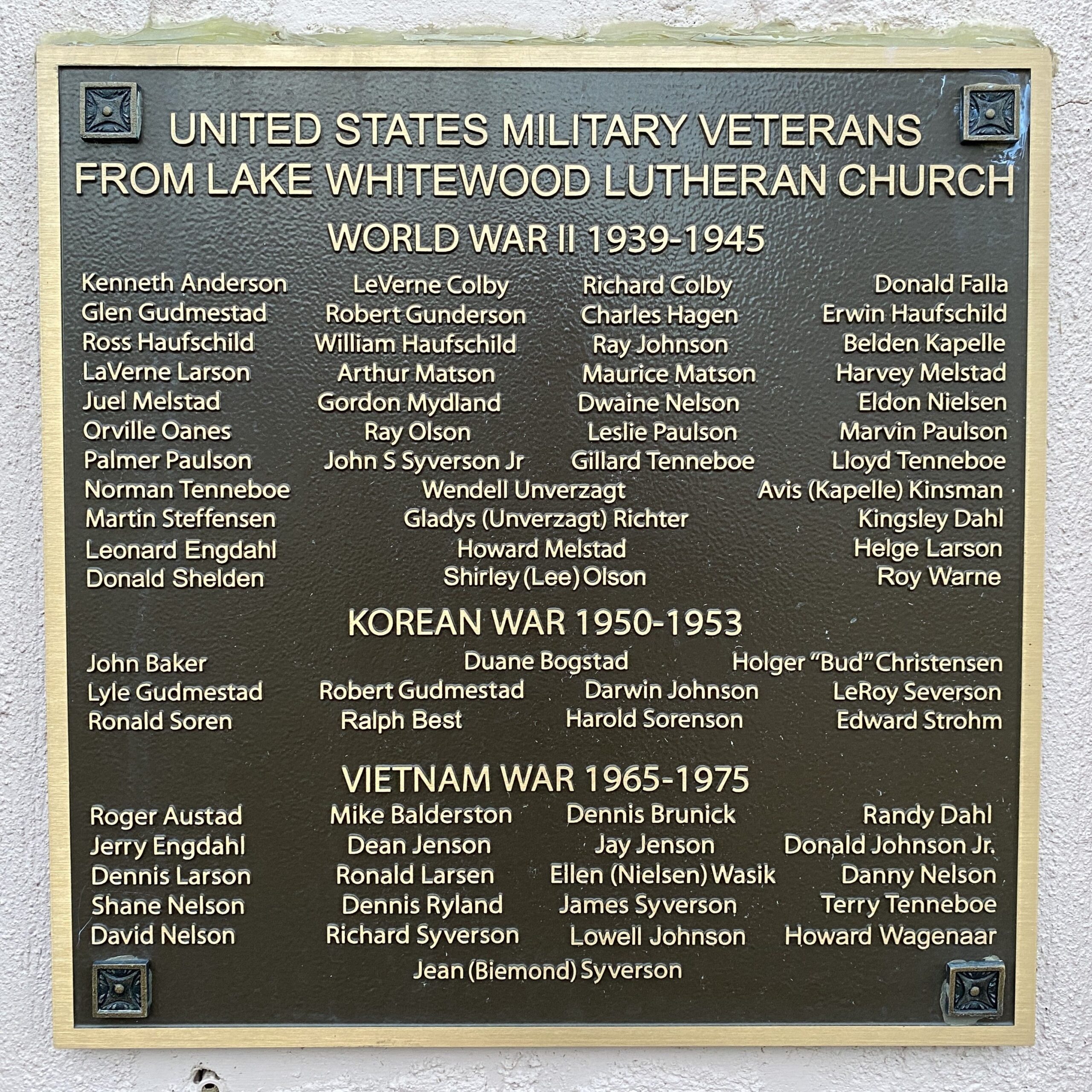 LAKE WHITEWOOD CONGREGATION WAR VETERANS MEMORIAL PLAQUE B