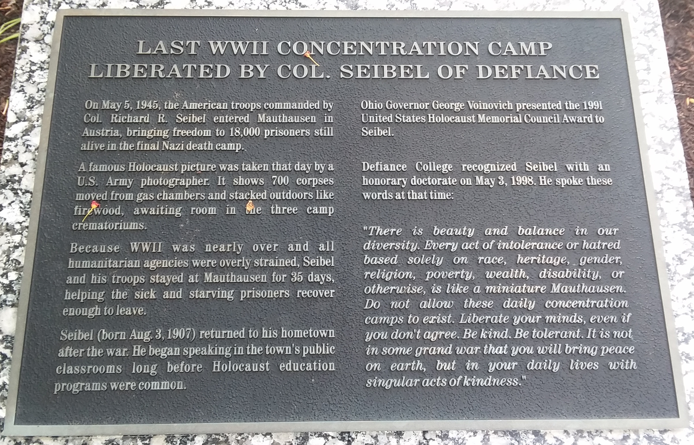 LAST WWII CONCENTRATION CAMP MEMORIAL PLAQUE