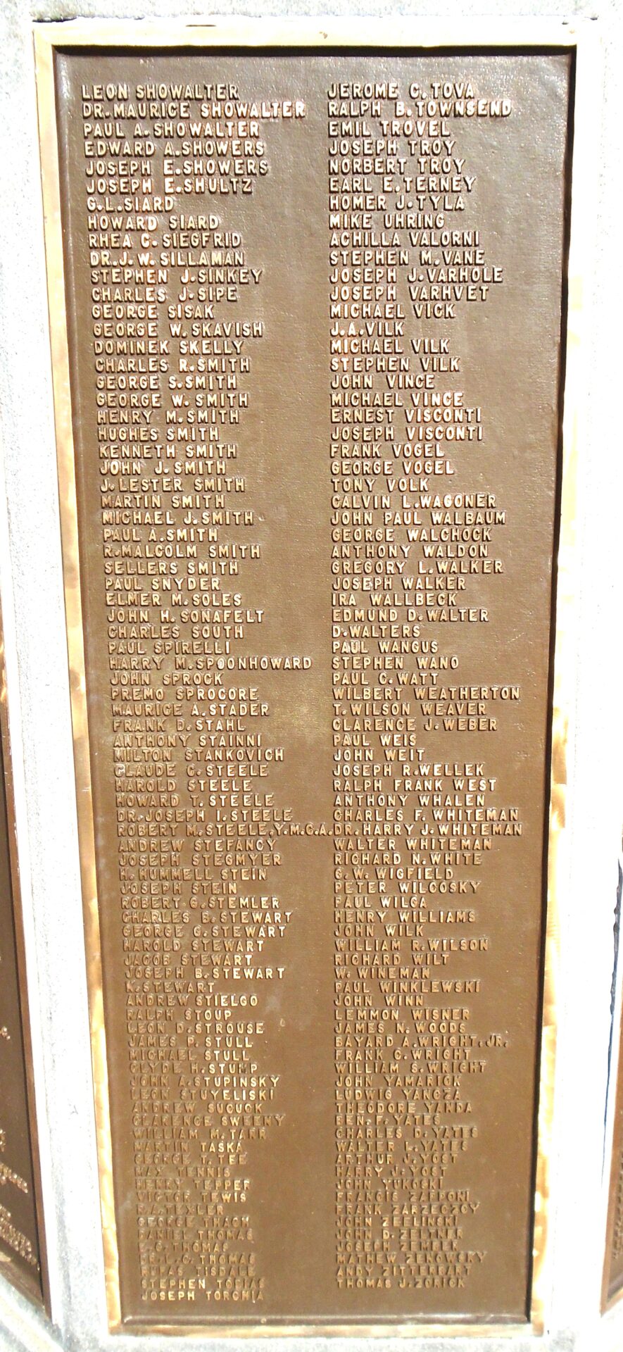Type of Memorial: War Memorial Honor Roll Plaques, Panels and Stones