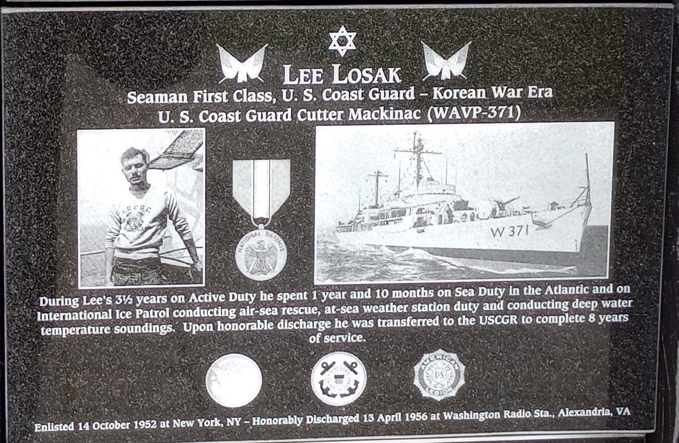 LEE LOSAK WAR MEMORIAL PLAQUE