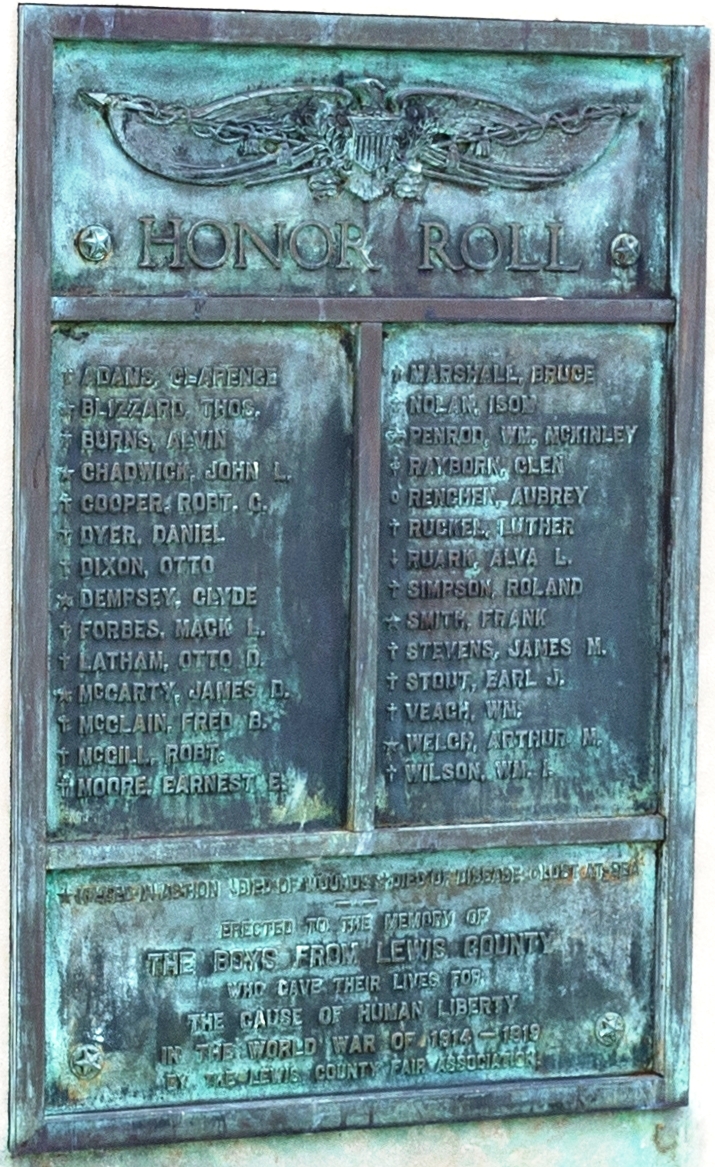 LEWIS COUNTY WORLD WAR I MEMORIAL PLAQUE