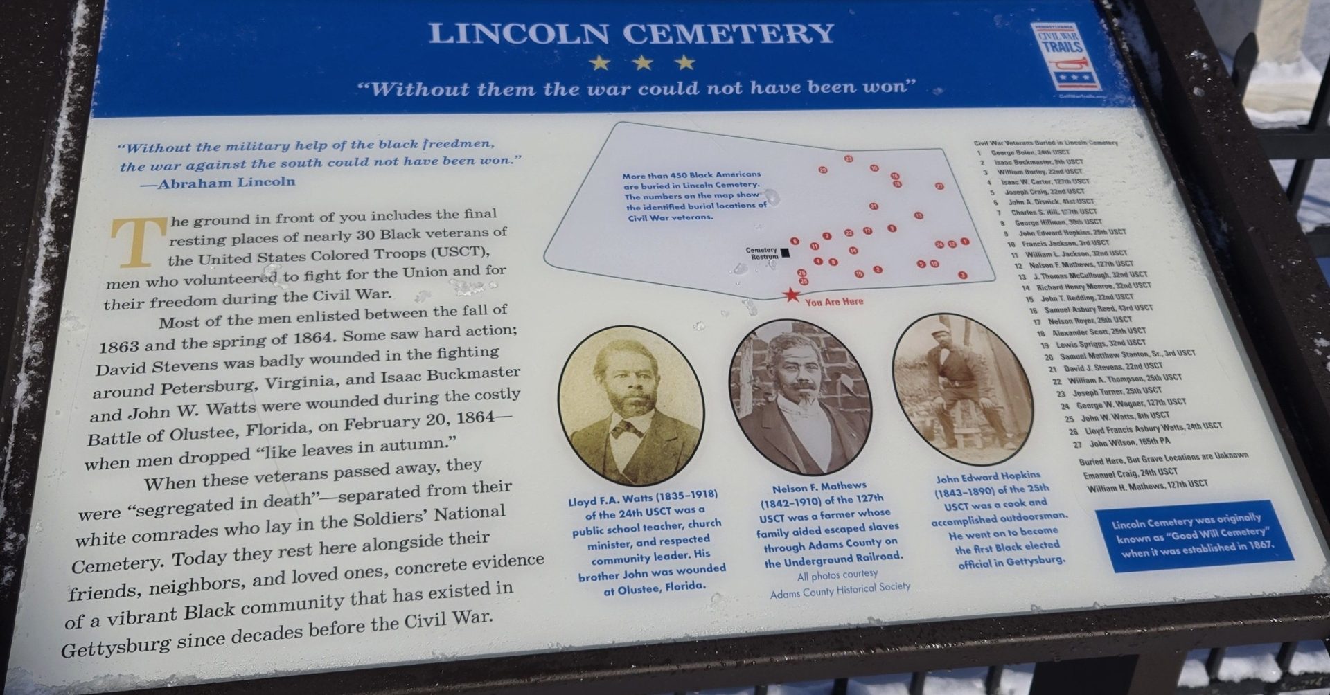 LINCOLN CEMETERY WAR MEMORIAL PANEL