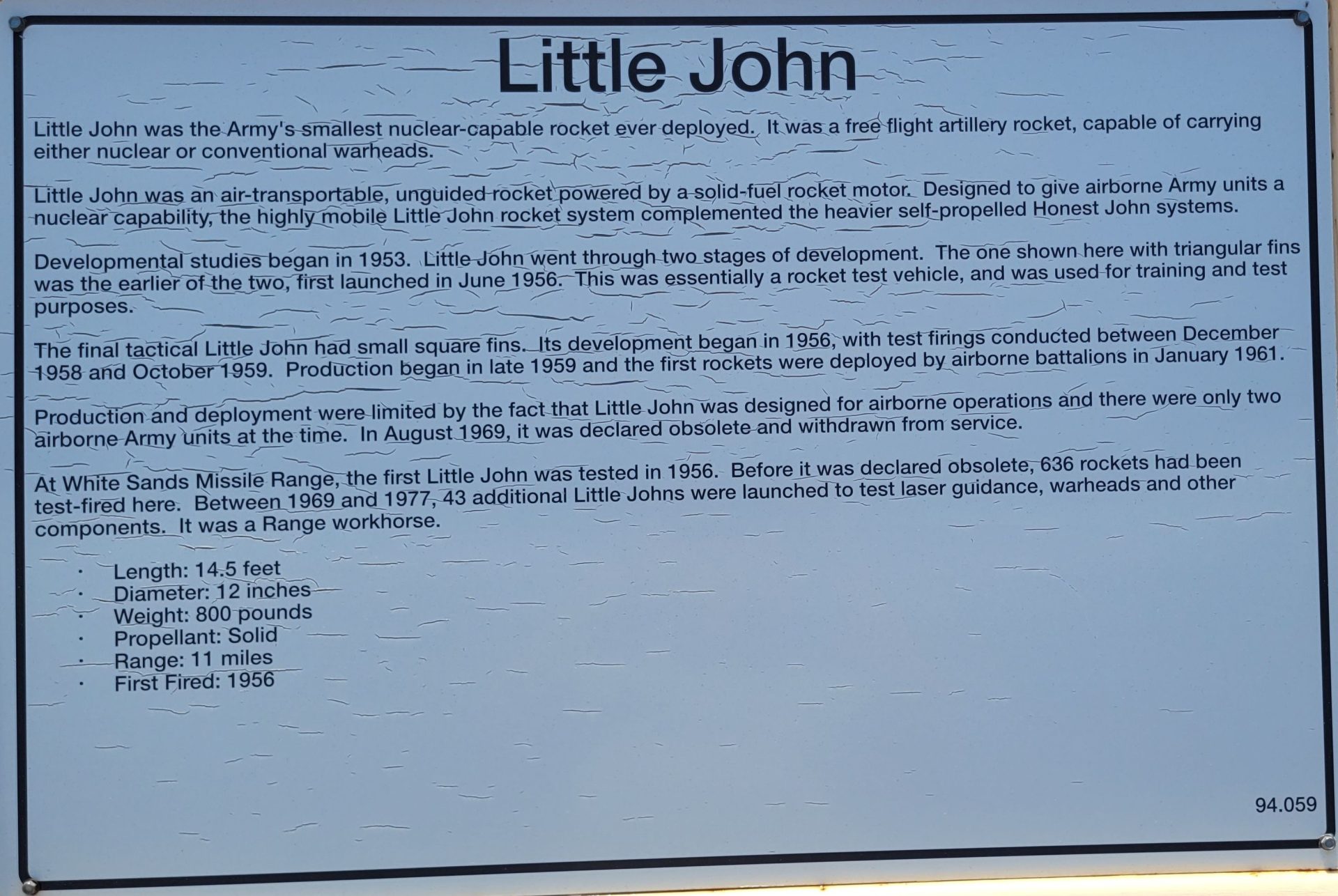 SEE ALSO-LITTLE JOHN ROCKET MEMORIAL