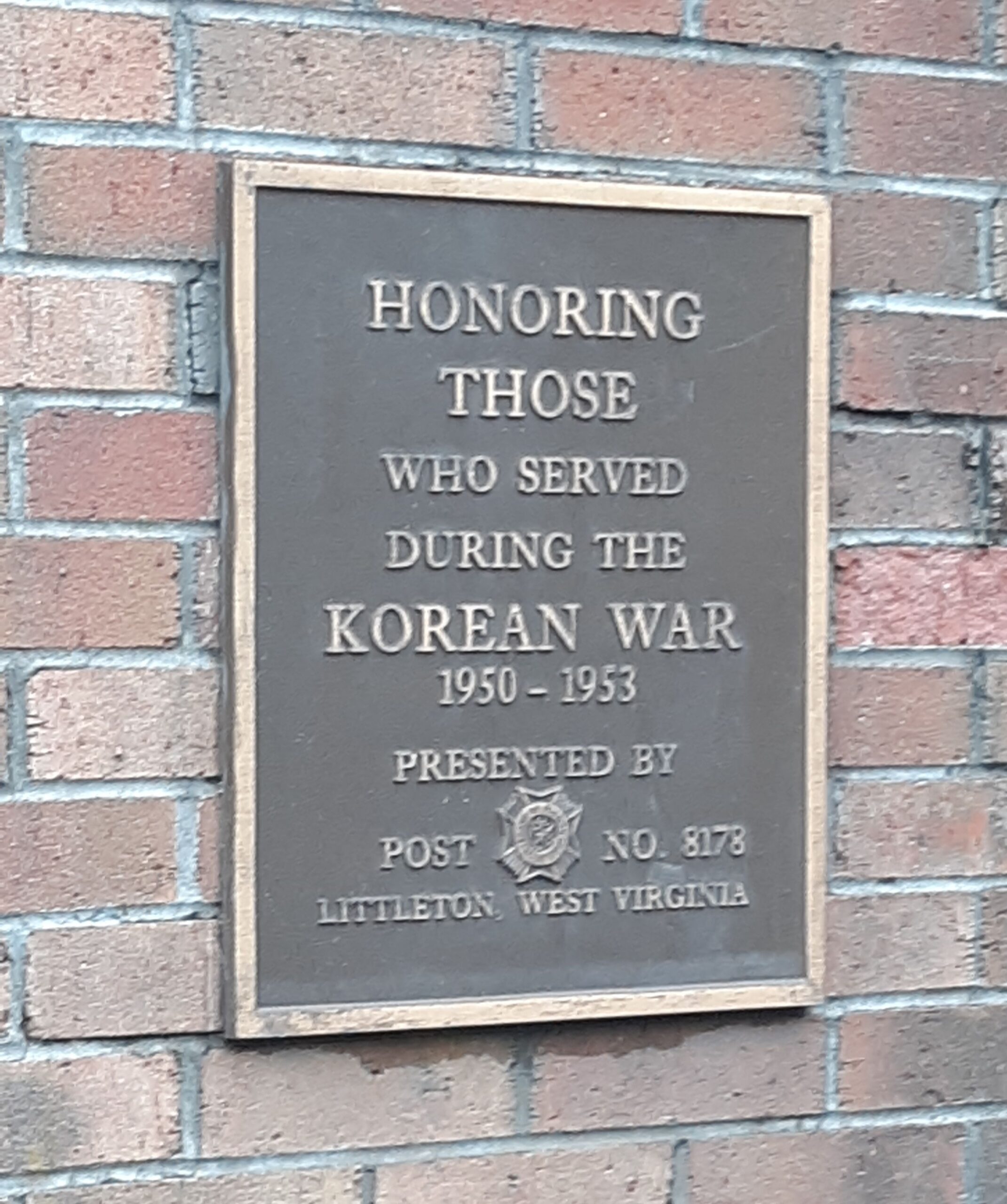 LITTLETON, WV WAR VETERANS MEMORIAL PLAQUE B