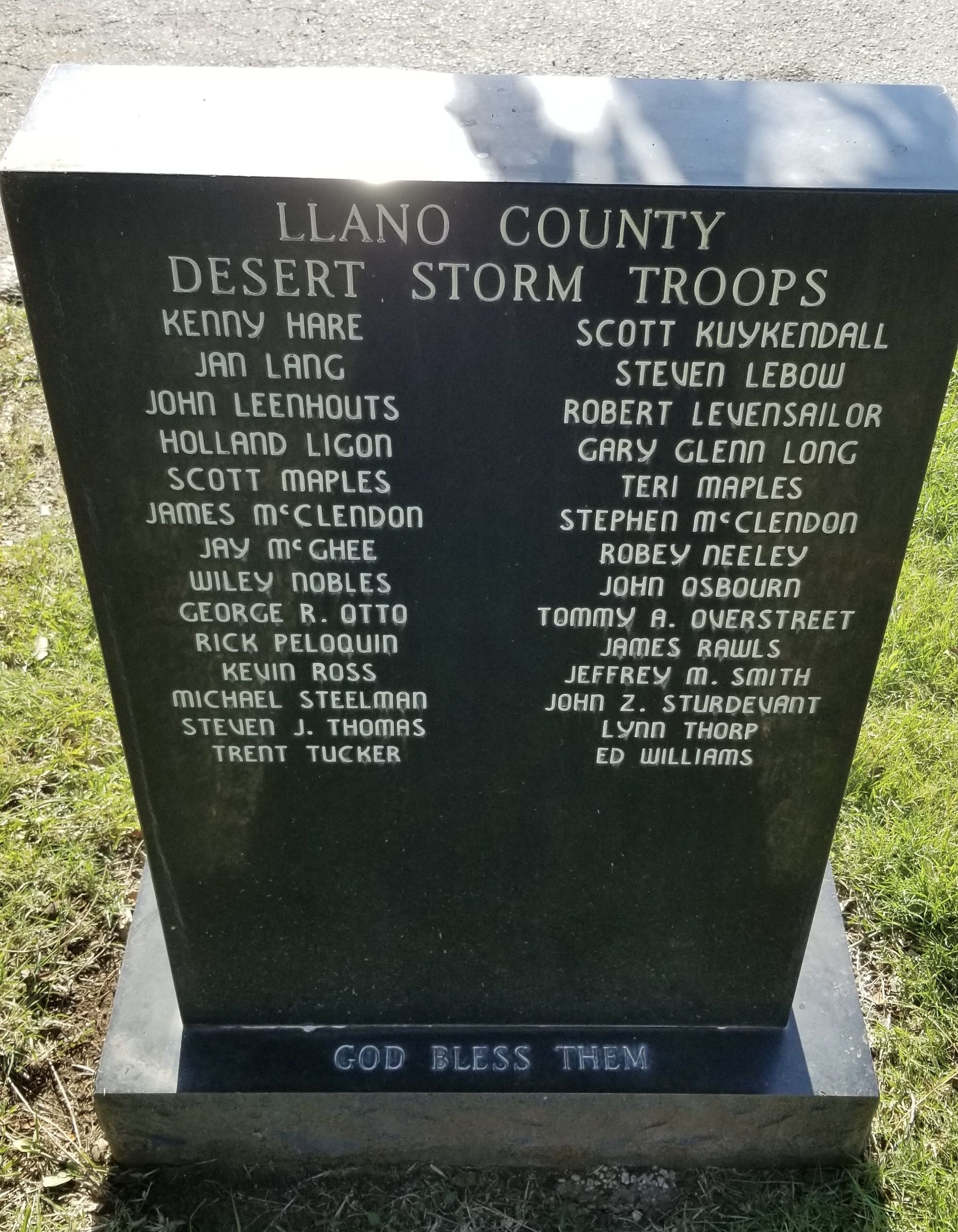 LLANO COUNTY DESERT STROM TROOPS MEMORIAL BACK