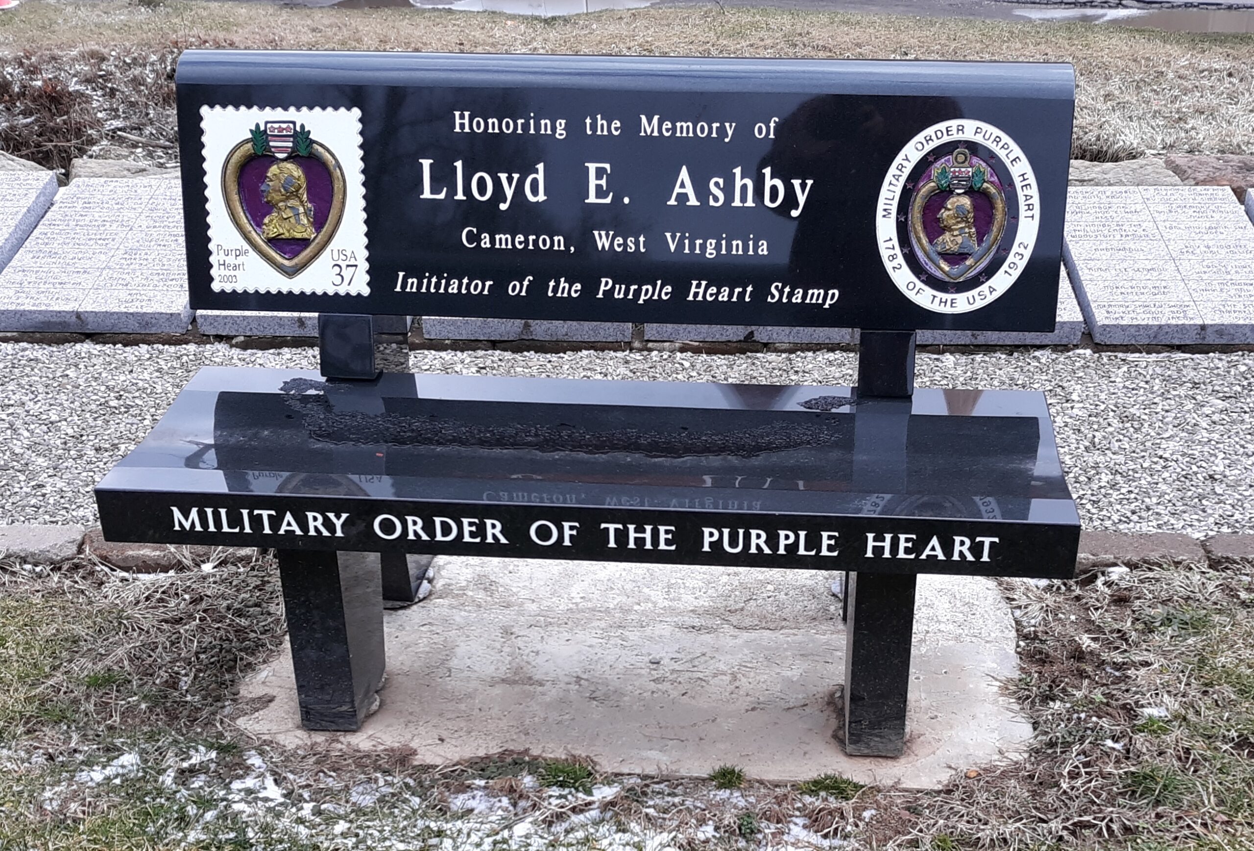 LLOYD E. ASHBY PURPLE HEART STAMP MEMORIAL BENCH