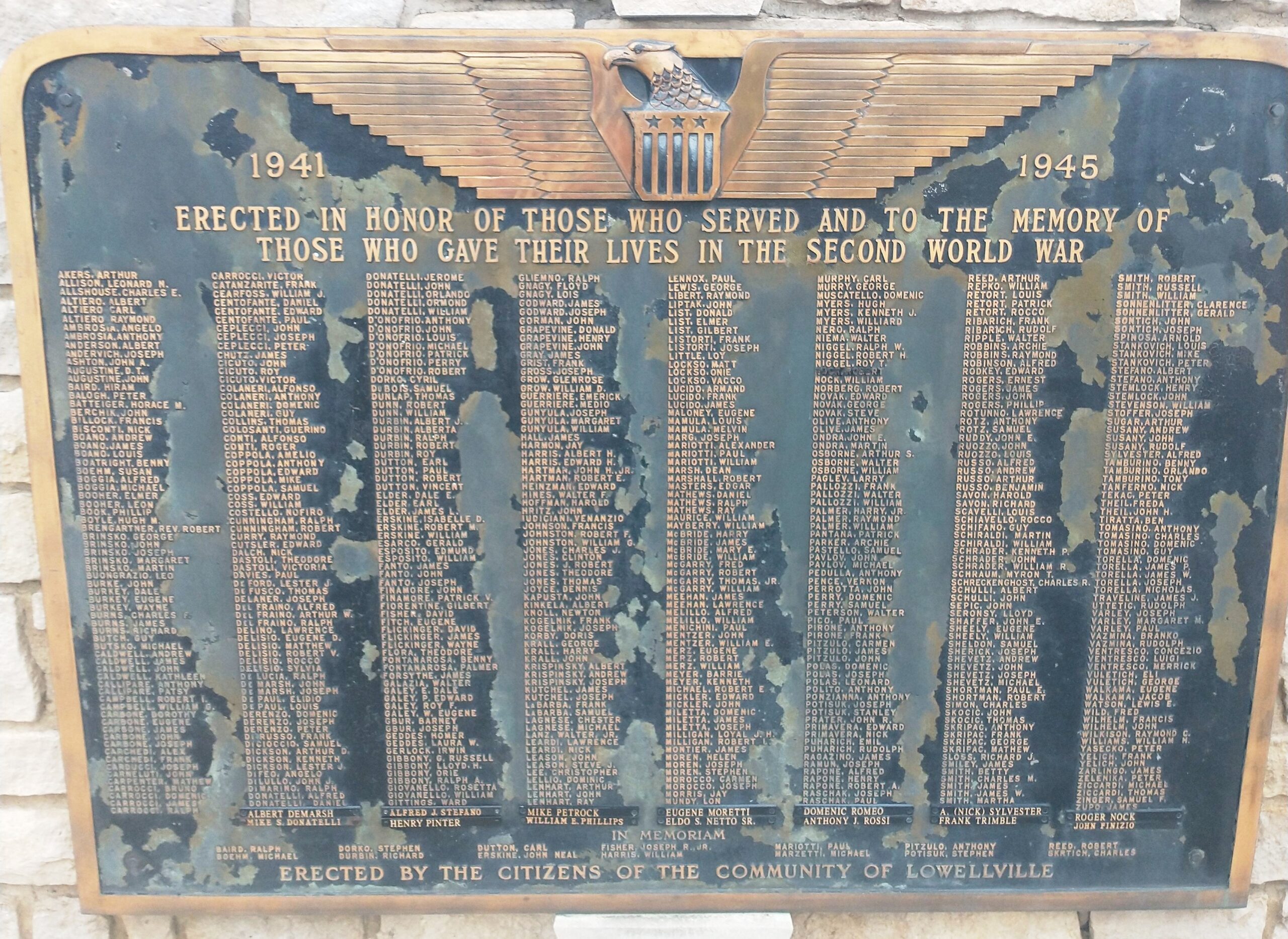 LOWELLVILLE WAR VETERANS MEMORIAL PLAQUE B