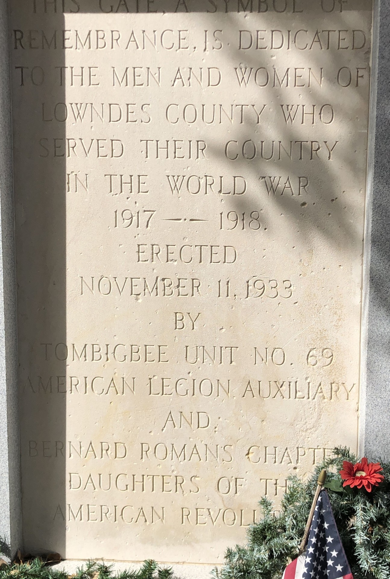 LOWNDES COUNTY WORLD WAR MEMORIAL LEFT STONE