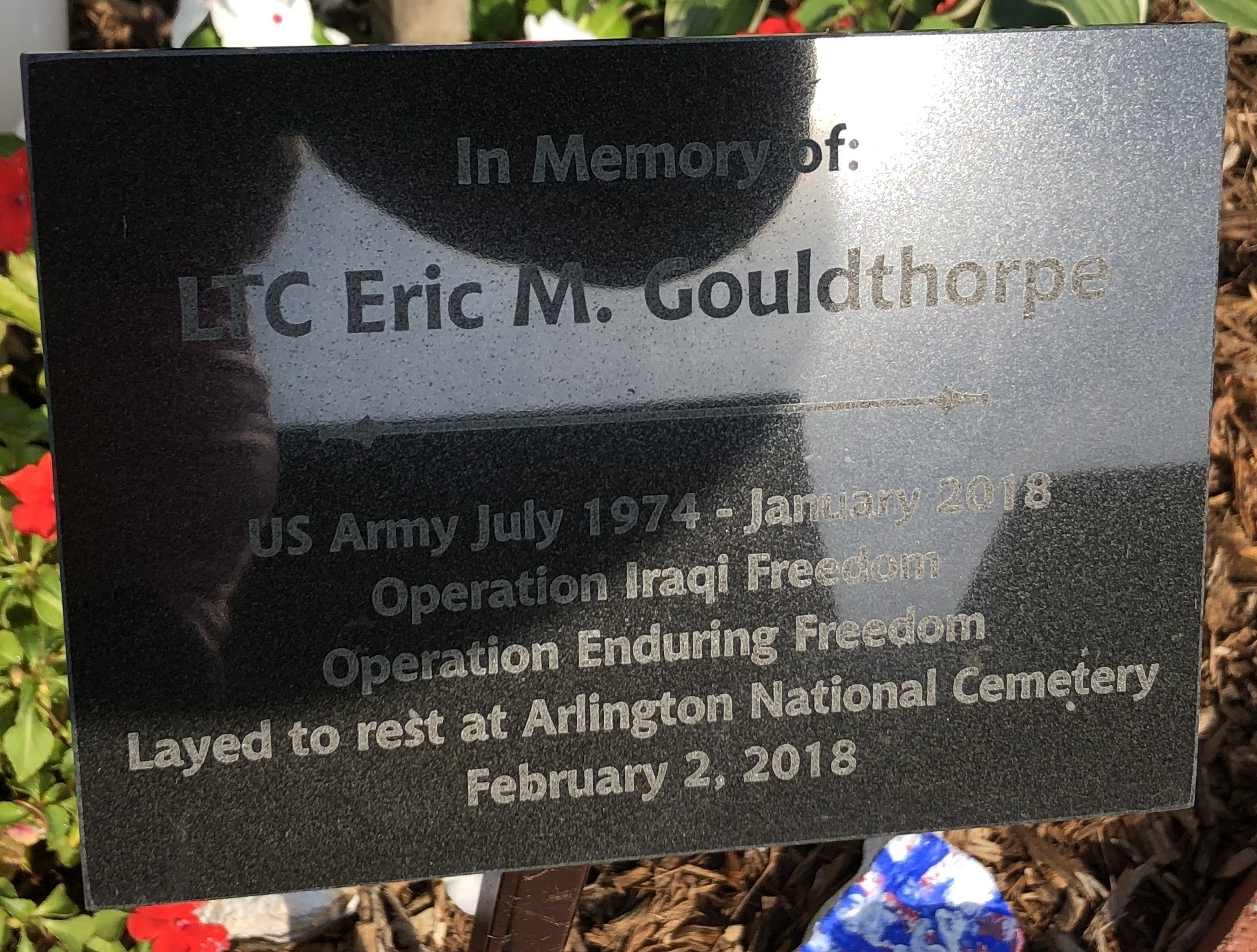 LTC ERIC M. GOULDTHORPE WAR MEMORIAL TREE PLAQUE