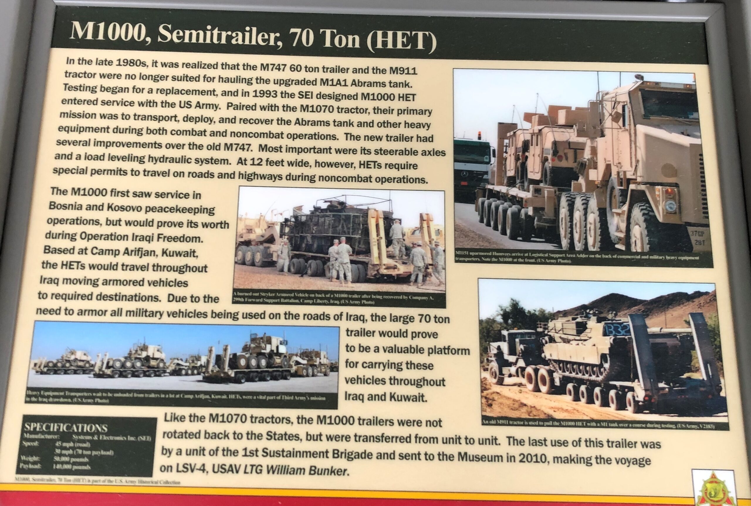 M1000. SEMITRAILER, 70 TON (HET) MEMORIAL PANEL