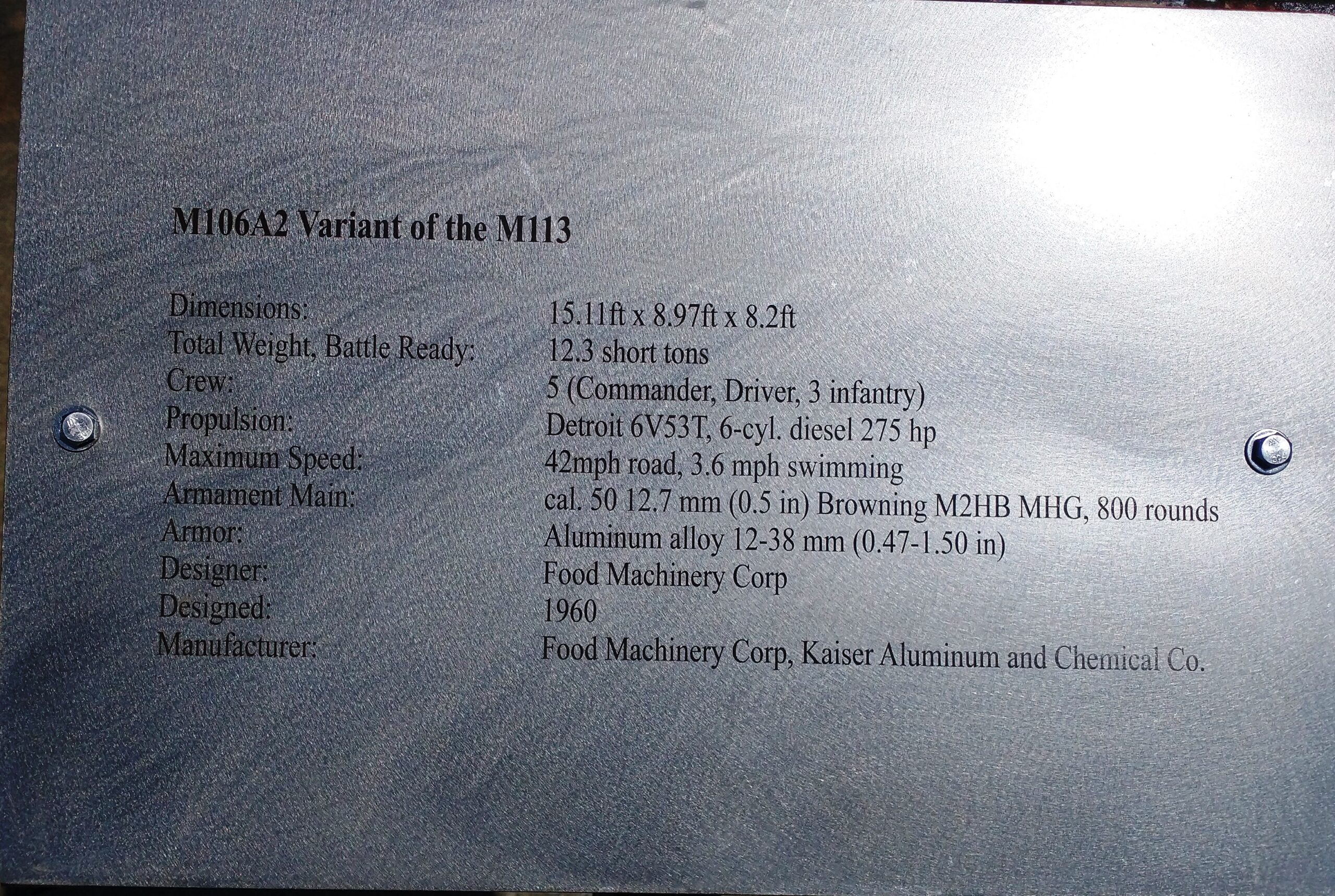 M106A2 VARIAND OF THE M113 MEMORIAL PLAQUE