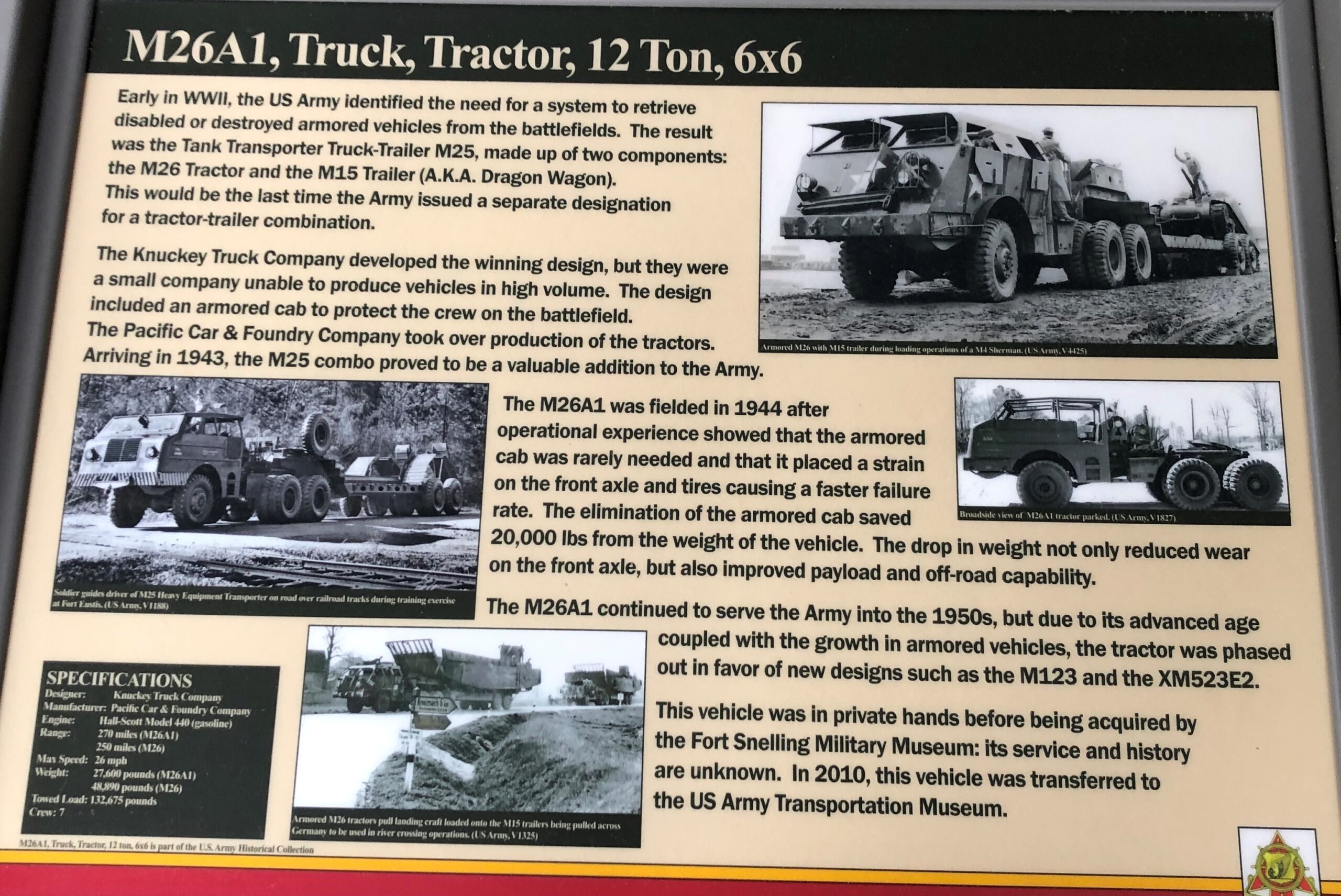 M26A1, TRUCK, TRACTOR, 12 TON 6X6 MEMORIAL PANEL