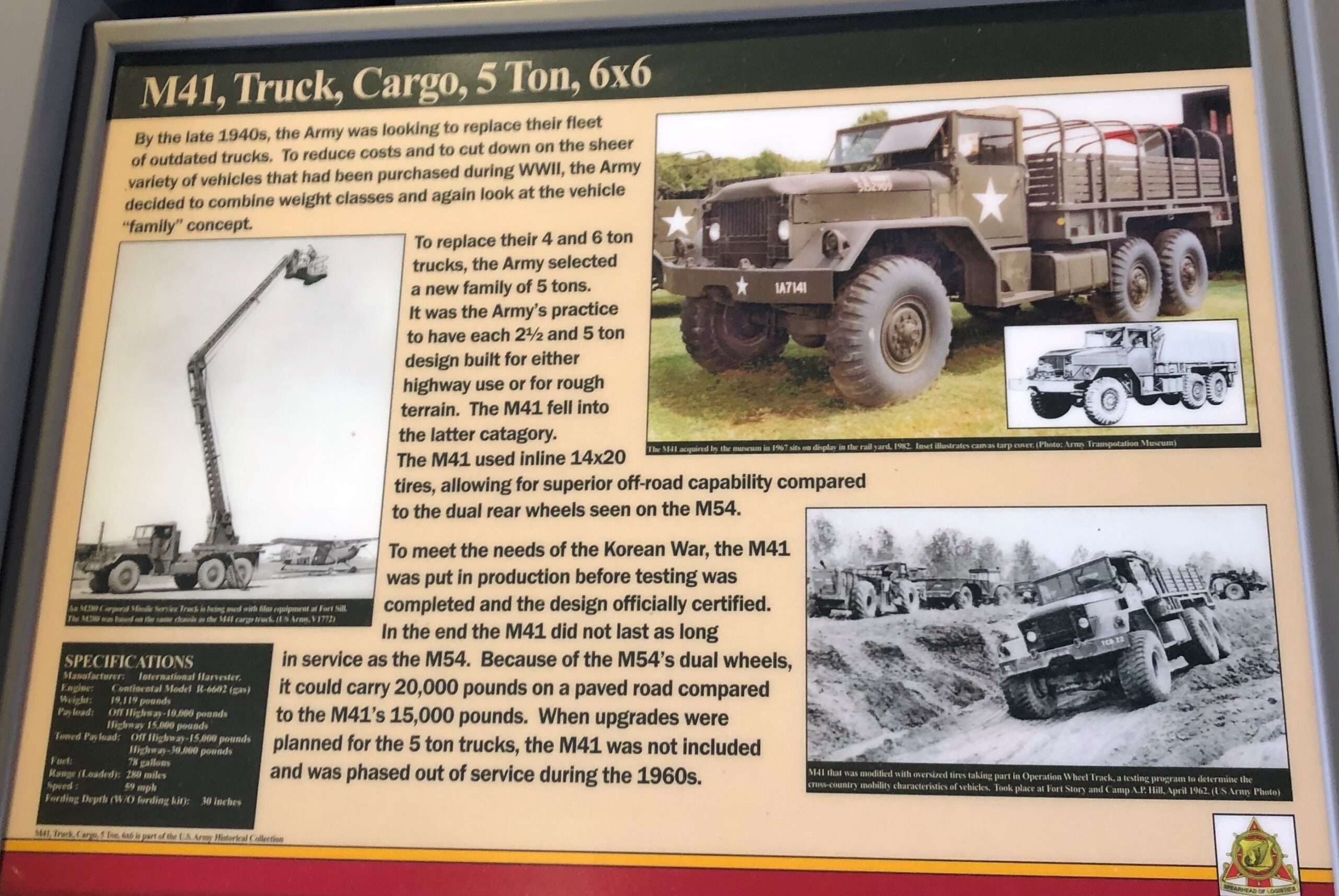 M41, TRUCK, CARGO, 5 TON, 6X6 MEMORIAL PLAQUE