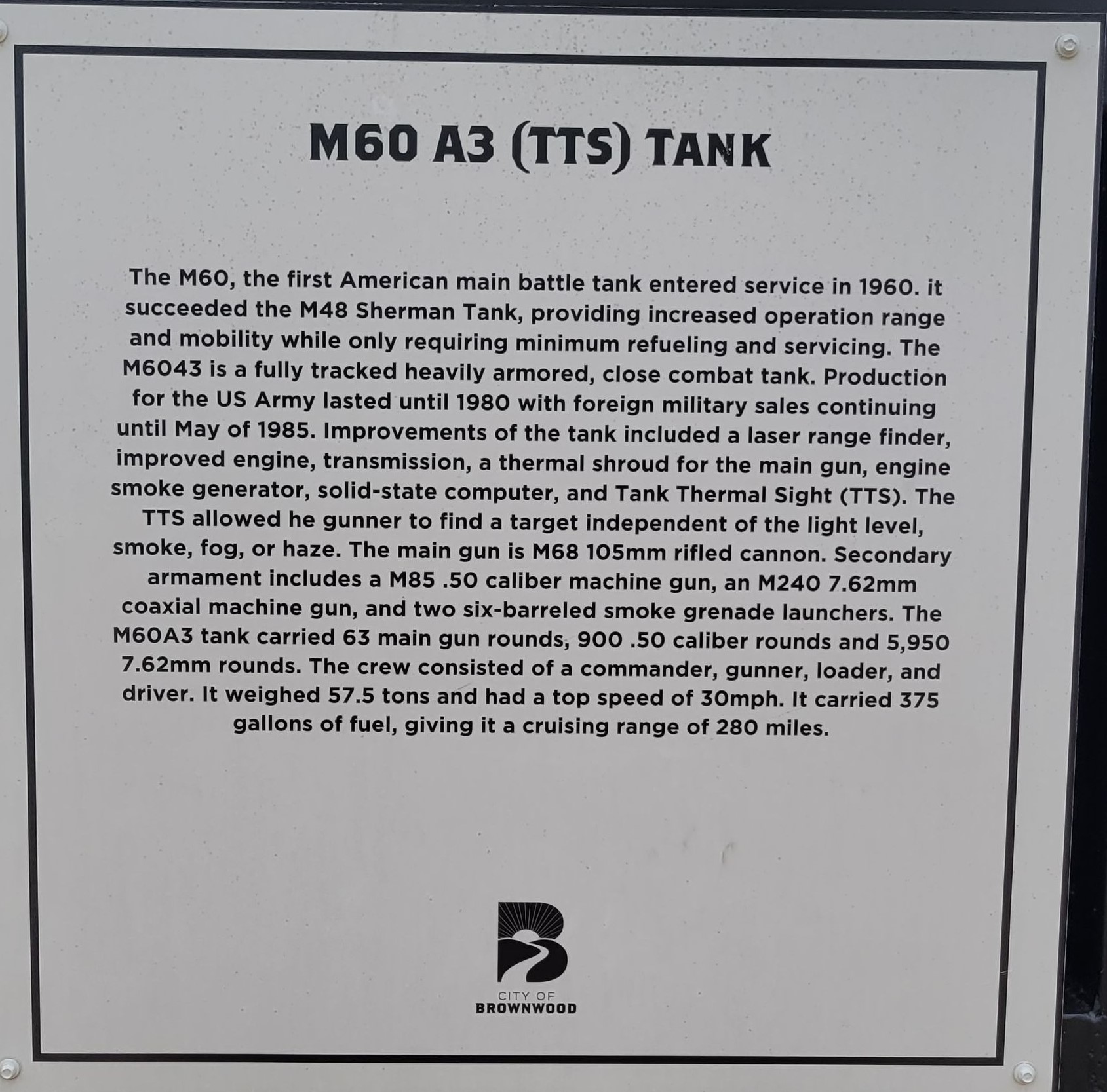 M60 A3 (TTS) TANK MEMORIAL PLAQUE