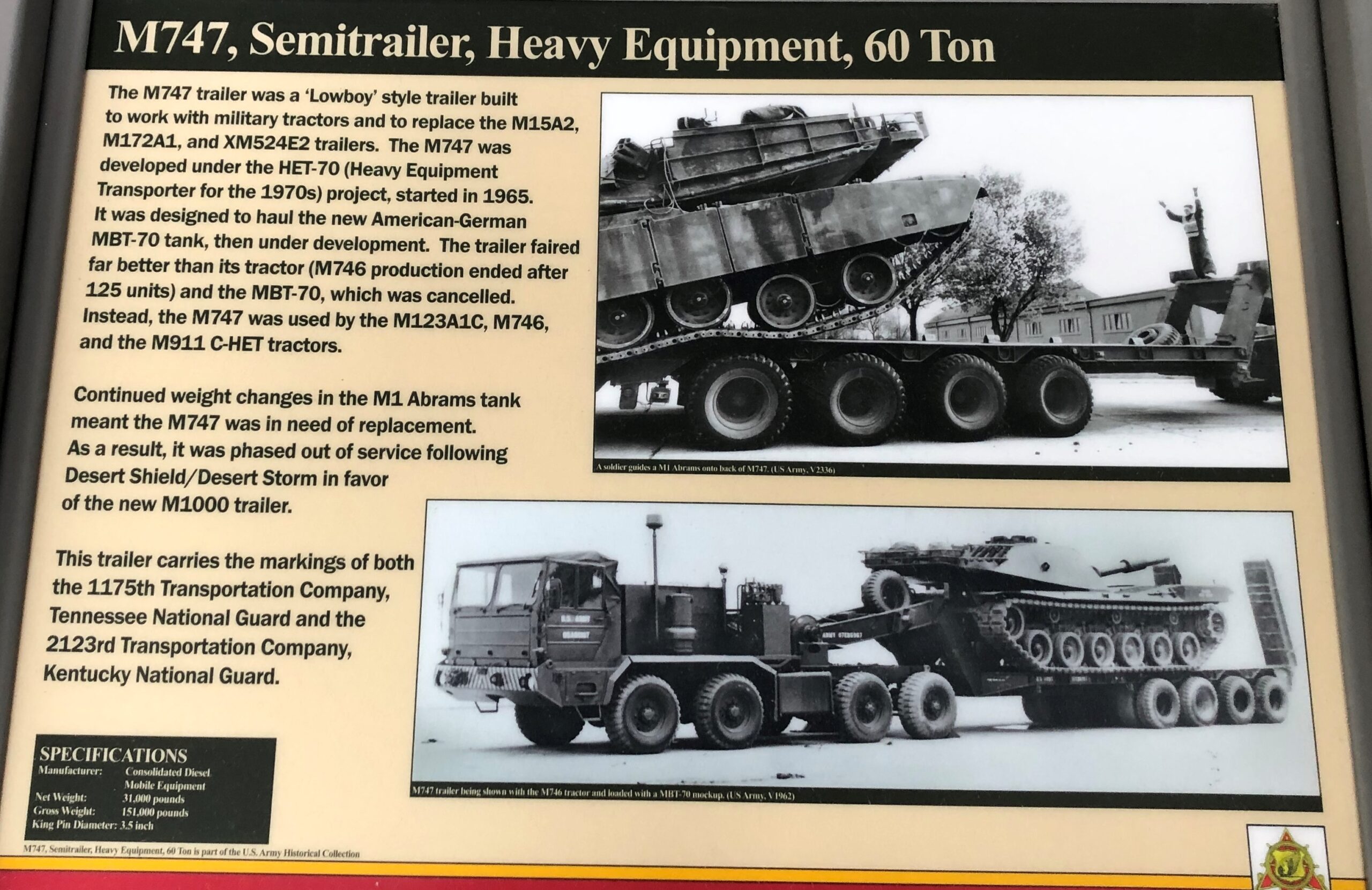 M747, SEMITRAILER, HEAVY, EQUIPMENT, 60 TONS MEMORIAL PANEL