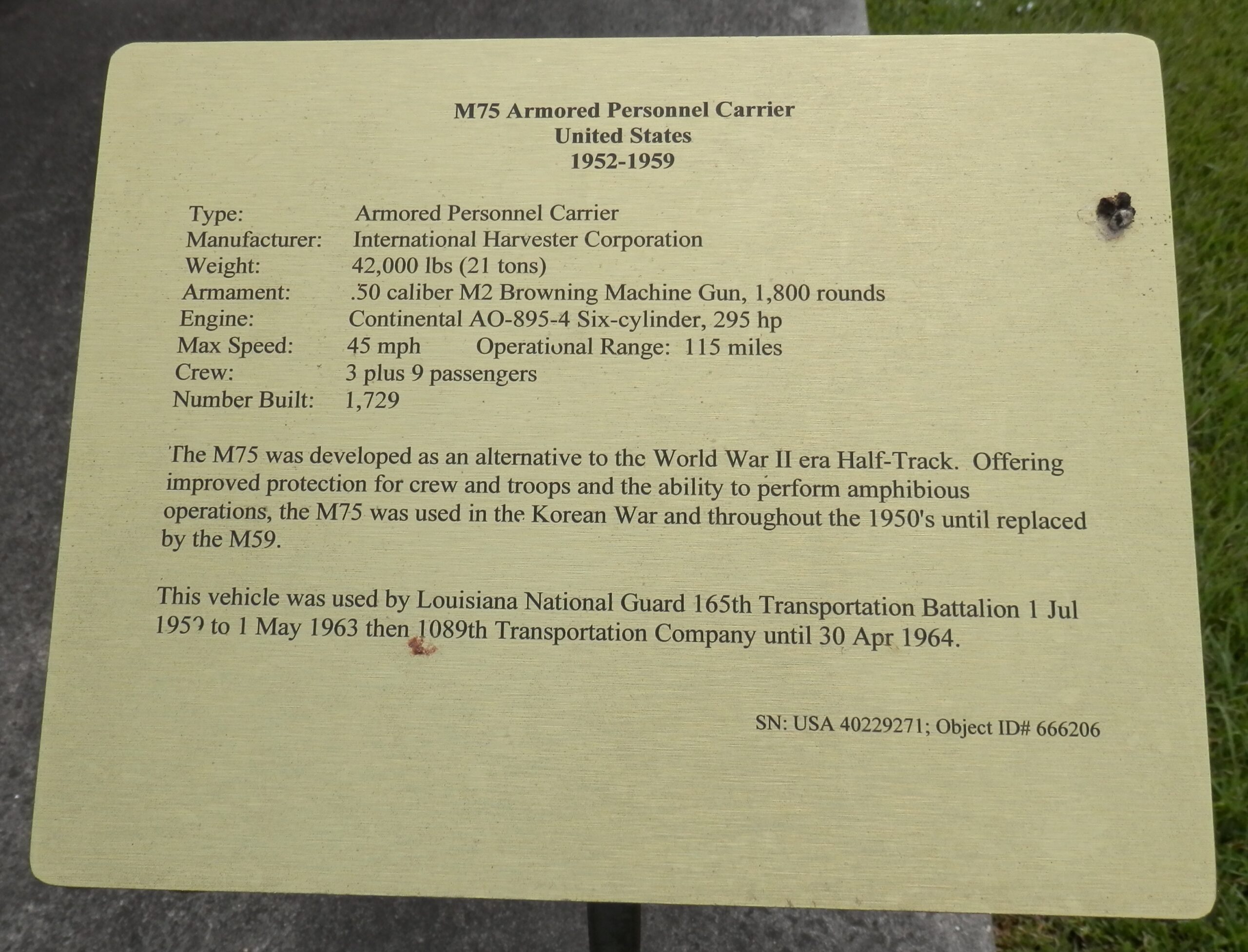 SEE ALSO-M75 ARMORED PERSONNEL CARRIER WAR MEMORIAL