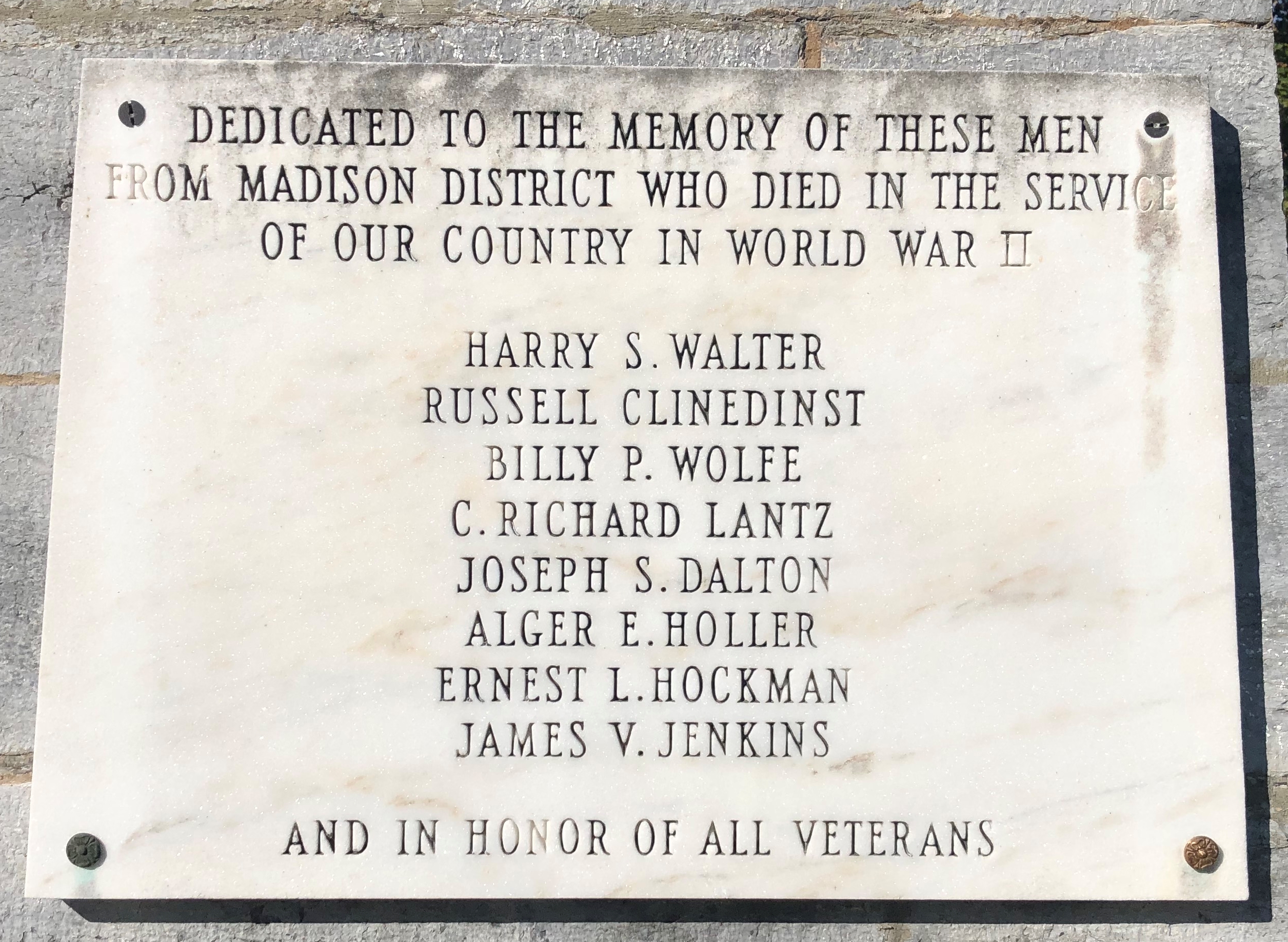 MADISON DISTRICT WORLD WAR II MEMORIAL PLAQUE