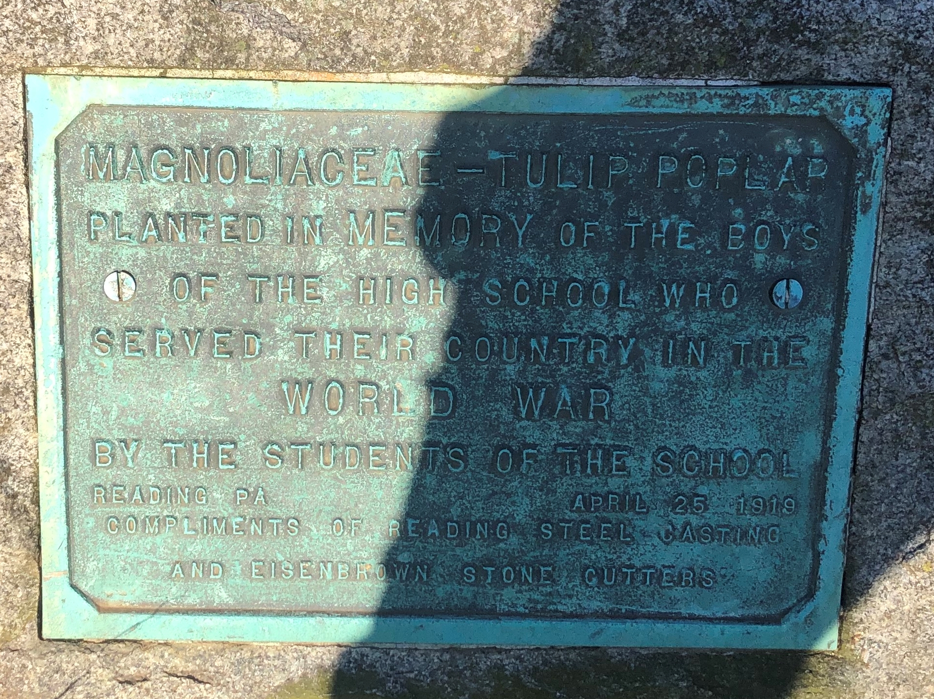 MAGNOLIACEAE-TULIP POPLAR WORLD WAR MEMORIAL TREE PLAQUE