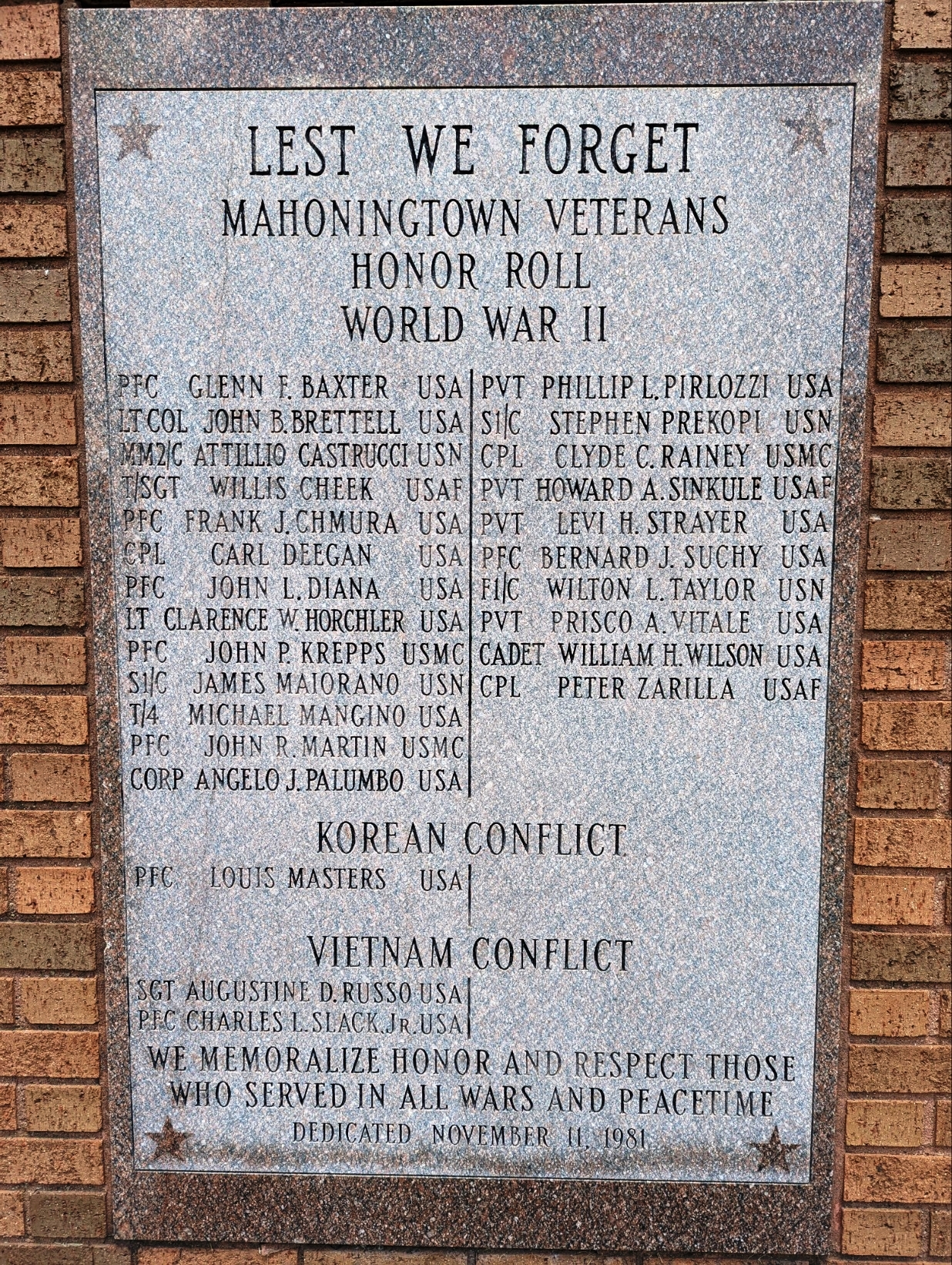 MAHONINGTOWN WAR VETERANS HONOR ROLL MEMORIAL STONE