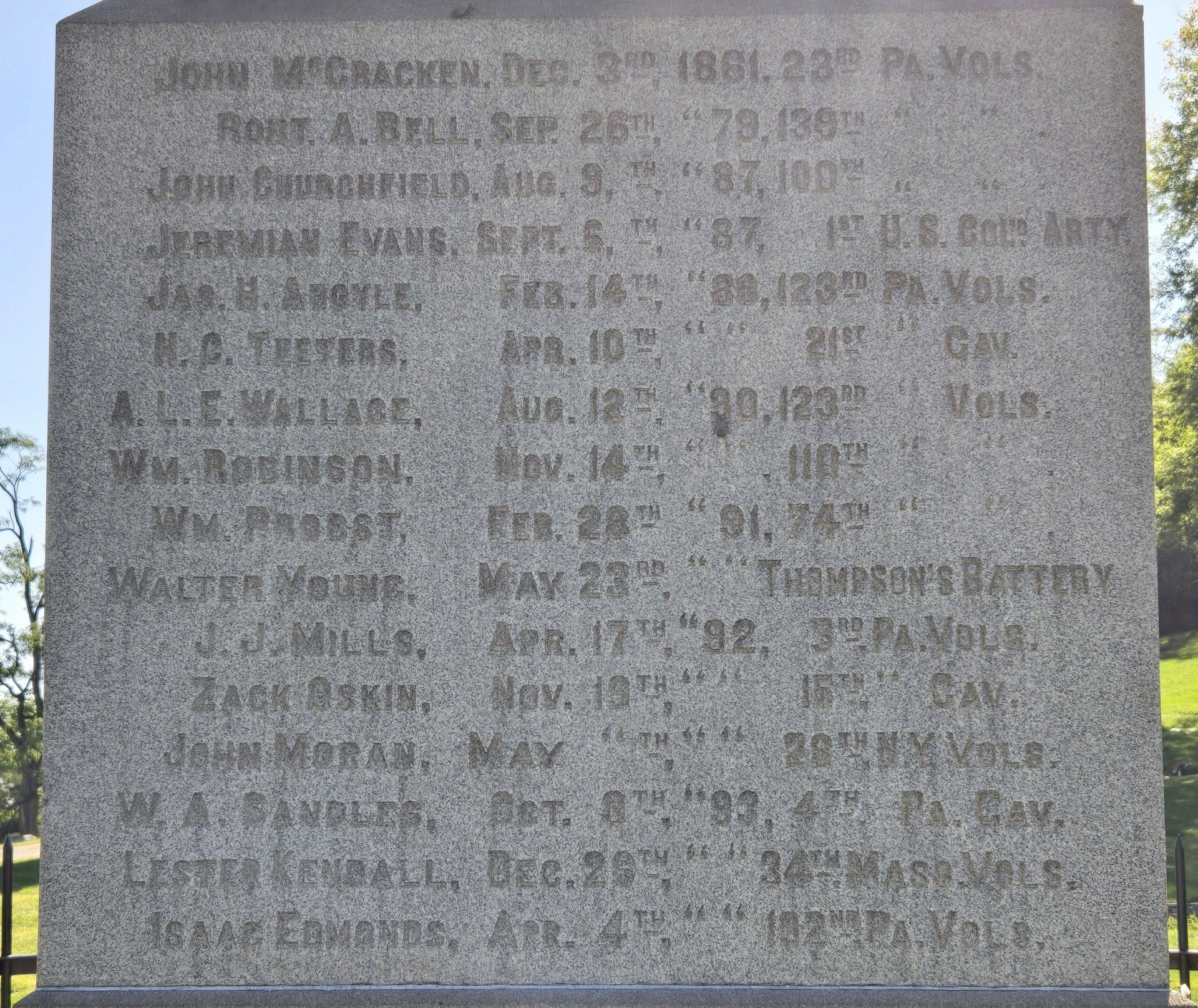 Wars Commemorated: CIVIL WAR