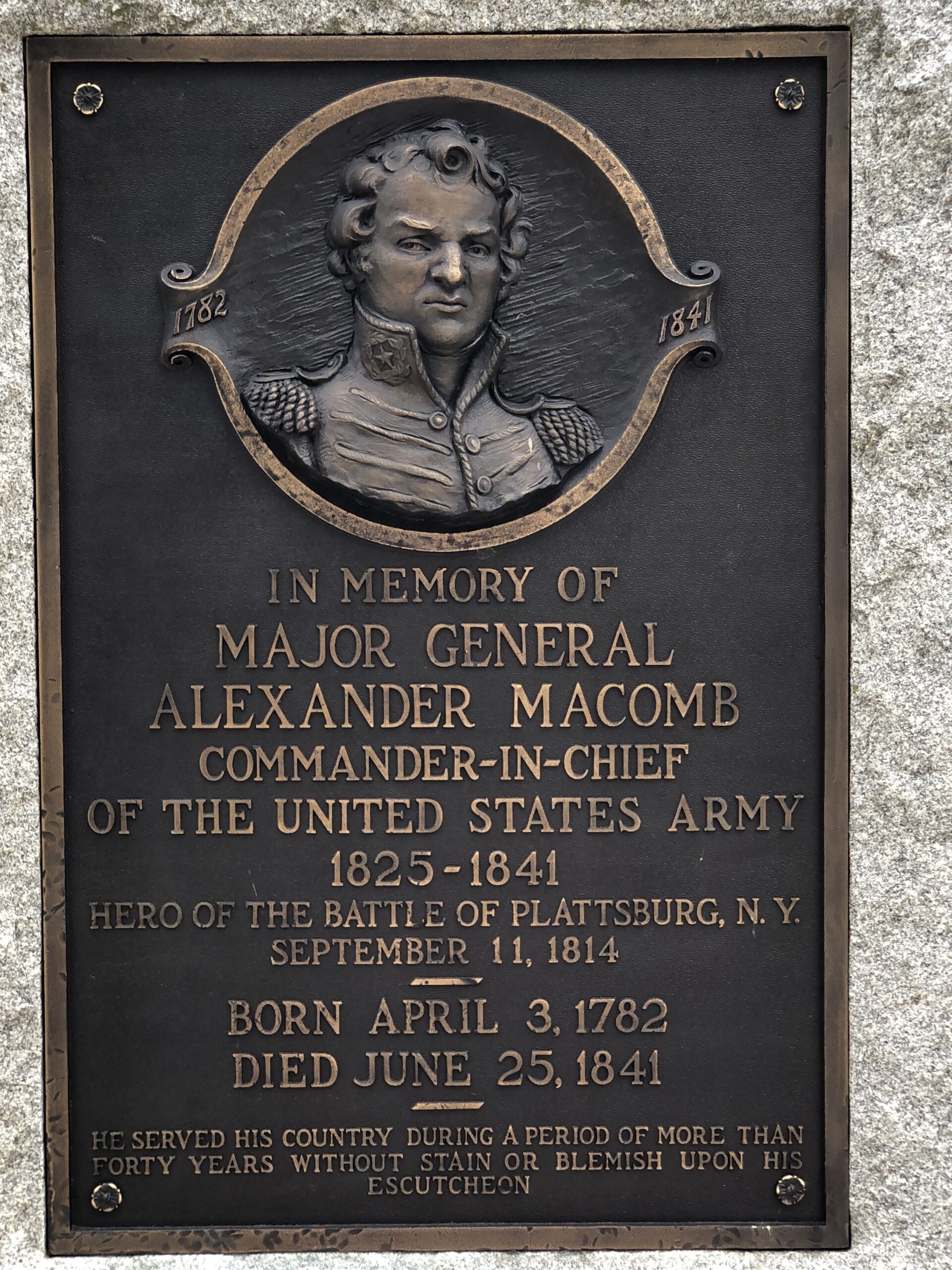 MAJOR GENERAL ALEXANDER MACOMB WAR MEMORIAL PLAQUE