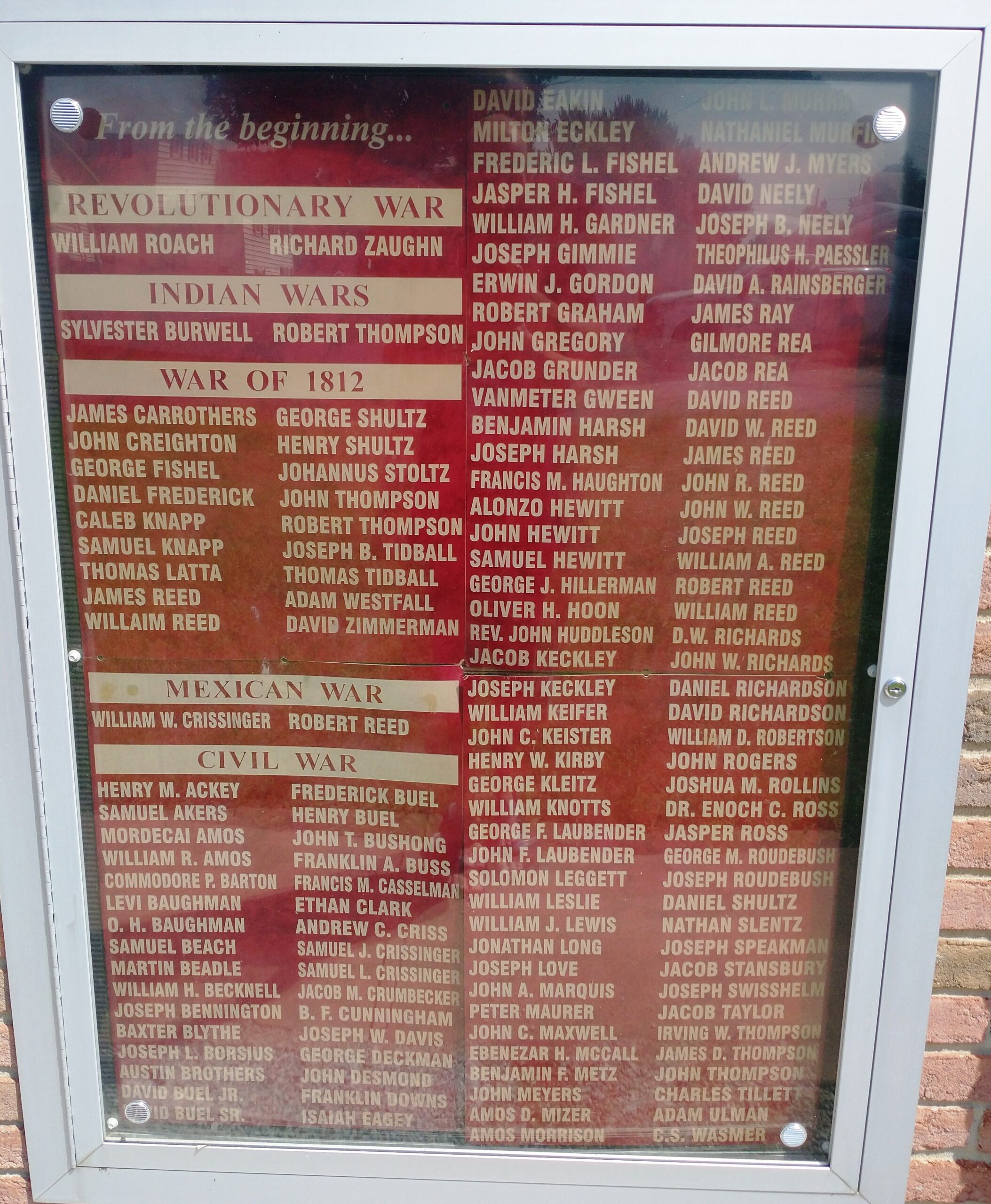 Wars Commemorated: REVOLUTIONARY WAR, INDIAN WARS, WAR OF 1812, MEXICAN WAR AND CIVIL WAR