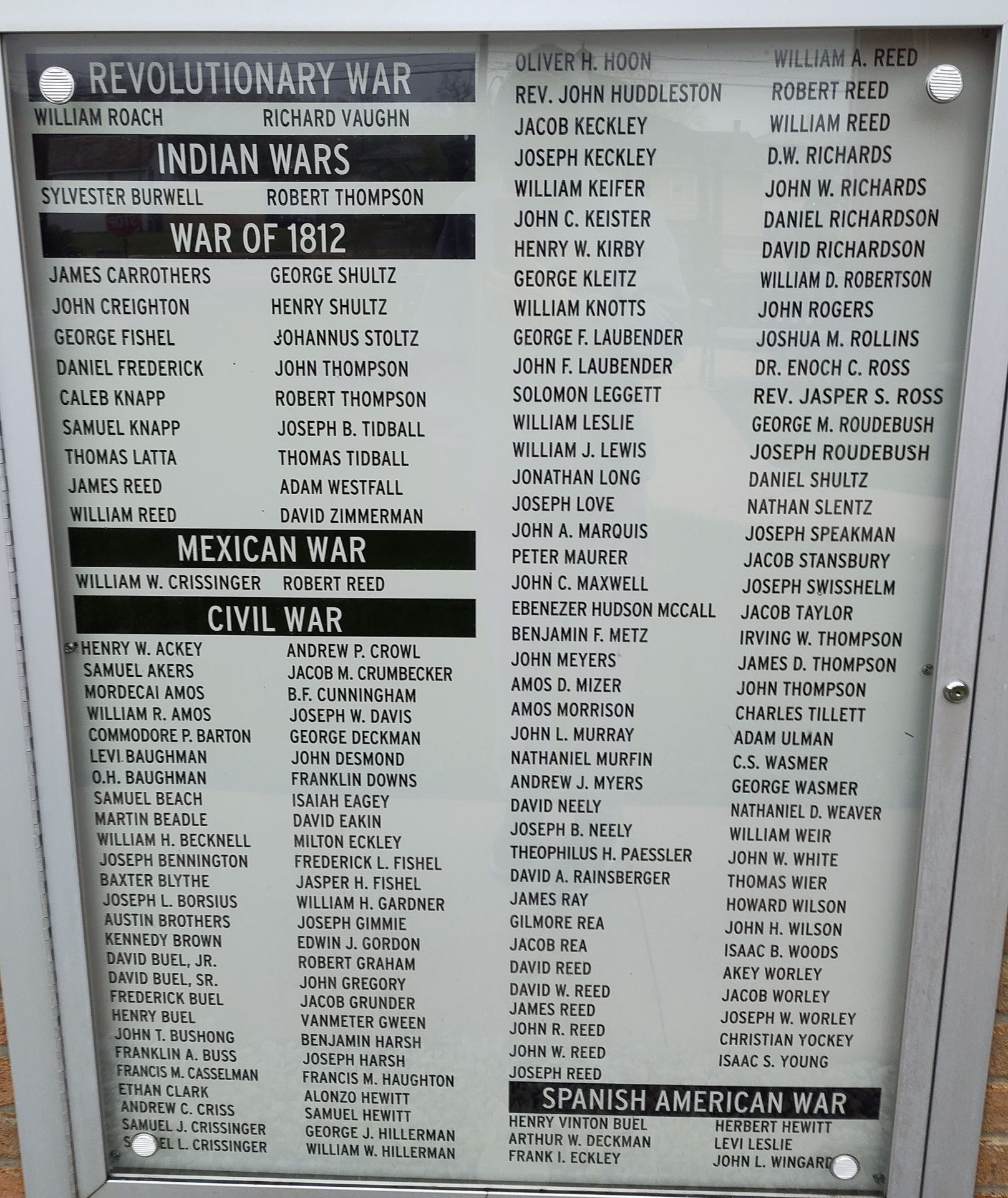 Wars Commemorated: REVOLUTIONARY WAR, INDIAN WARS, WAR OF 1812, MEXICAN WAR, CIVIL WAR AND SPANISH AMERICAN WAR