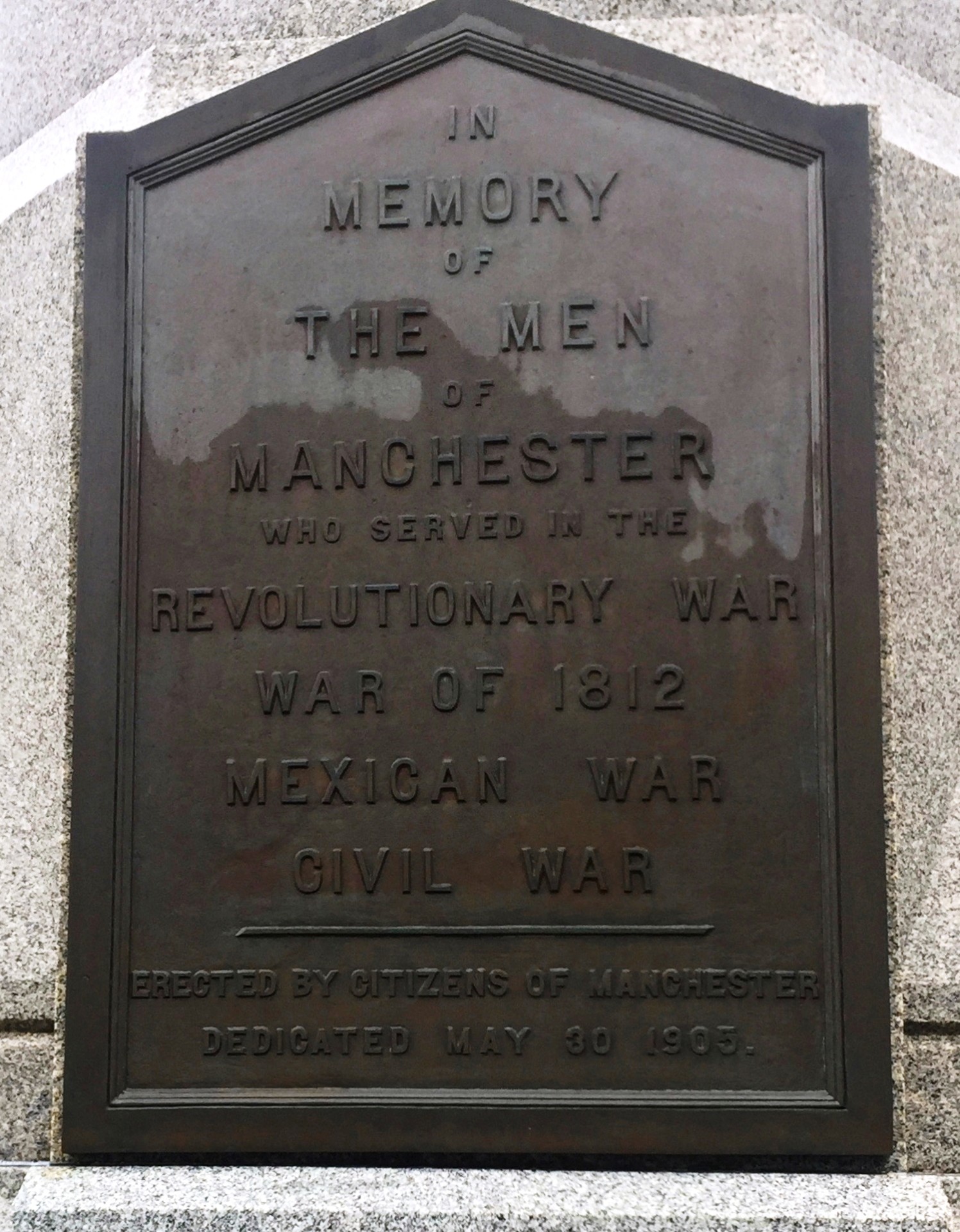 MANCHESTER WAR VETERANS MEMORIAL PLAQUE A