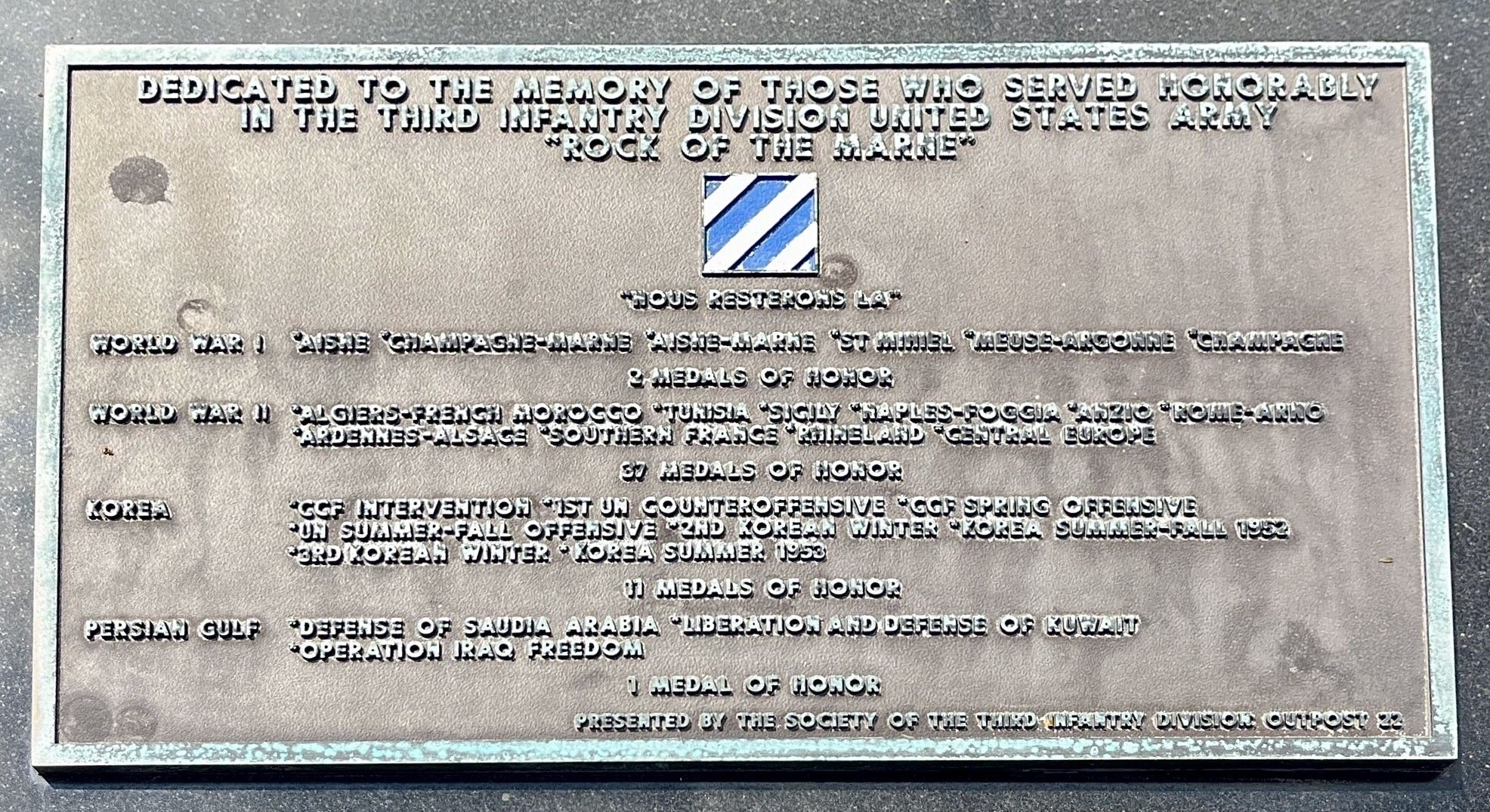 MARCH AIR RESERVE BASE THIRD INFANTRY DIVISION MEMORIAL PLAQUE