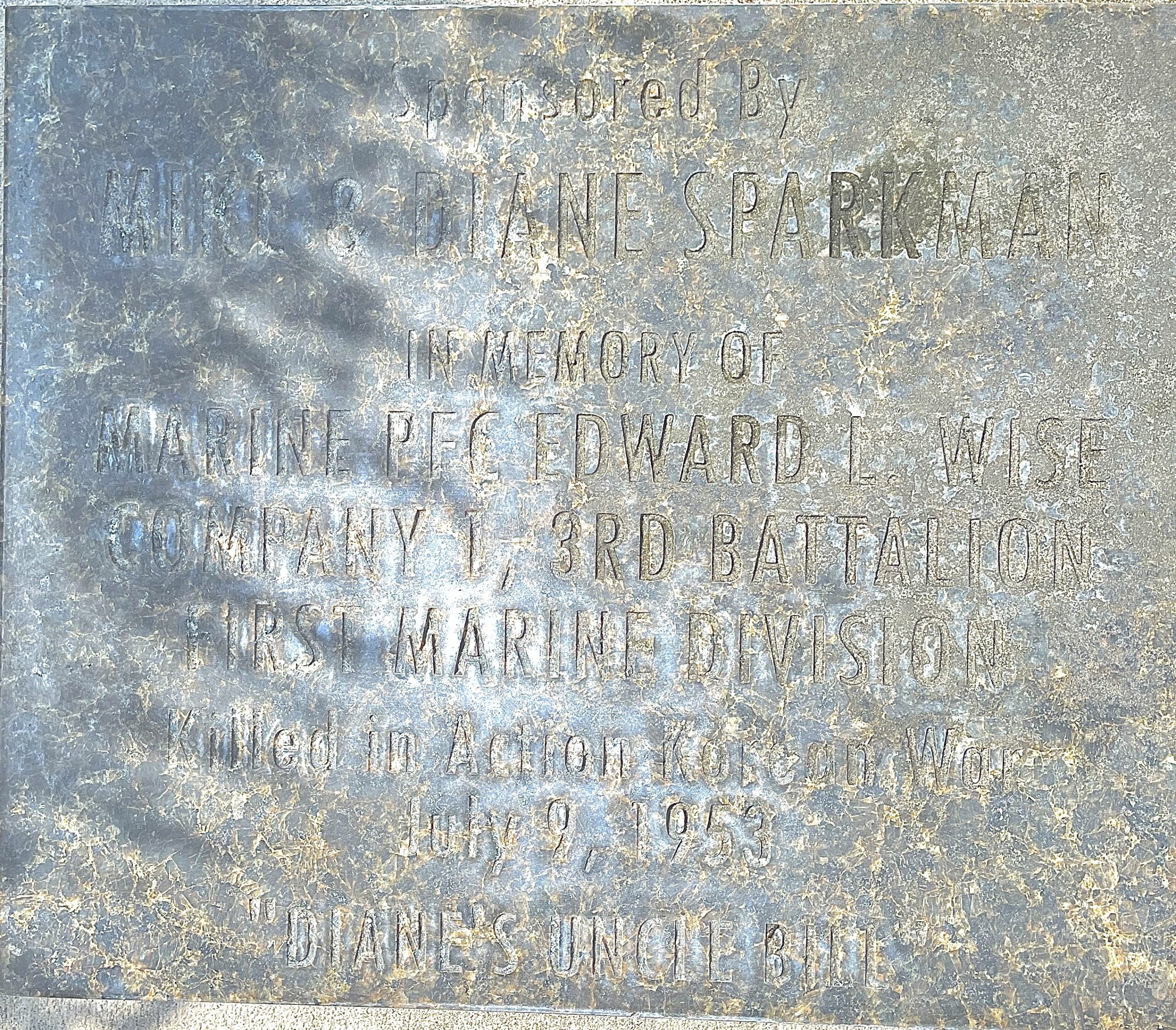 MARINE PFC EDWARD L. WISE WAR MEMORIAL PLAQUE