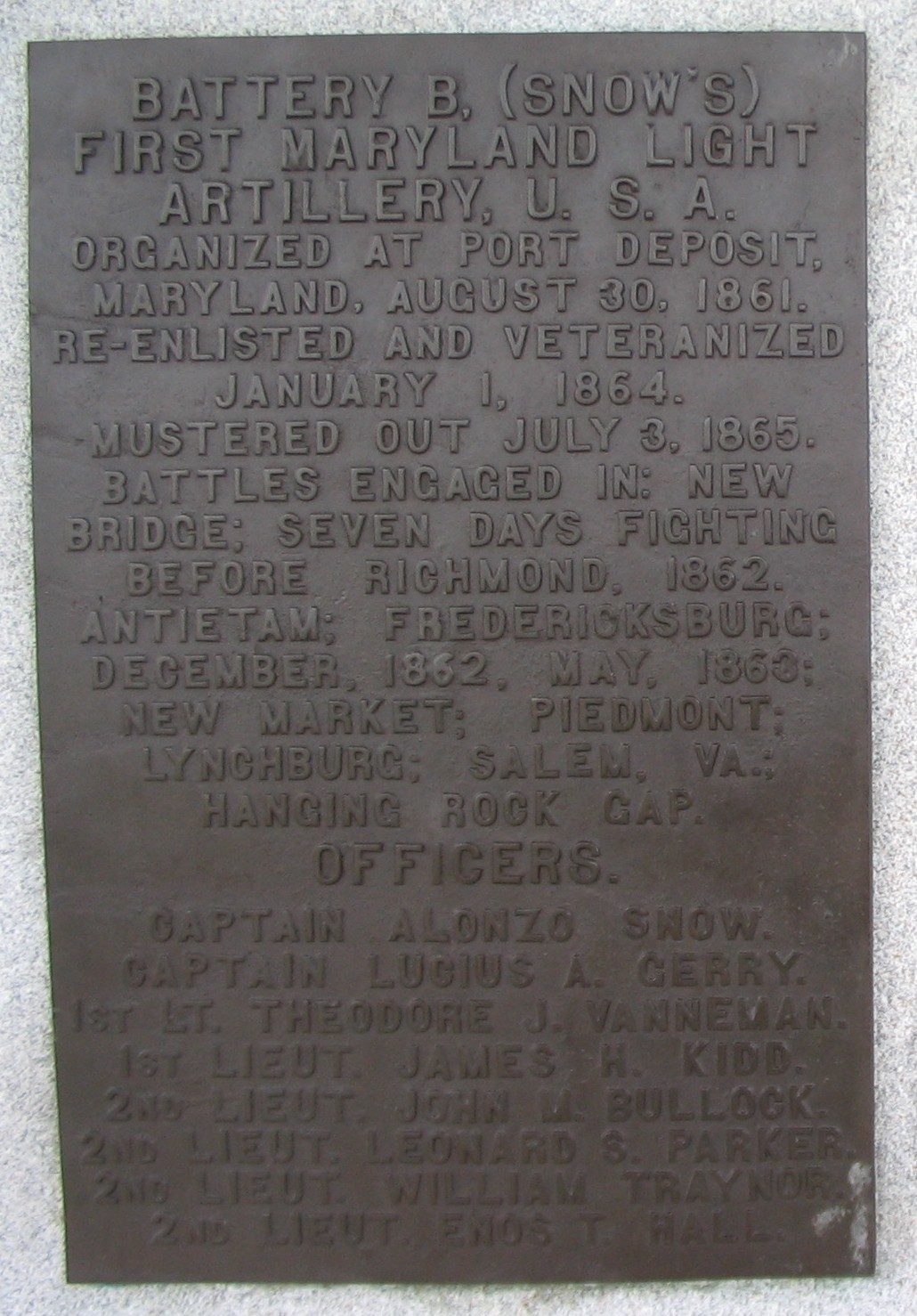 MARYLAND STATE MOUNUMENT AT ANTIETAM BATTLEFIELD PLAQUE E