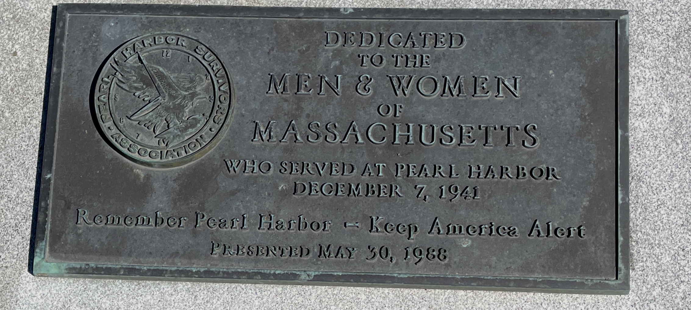 MASSACHUSETTS NATIONAL CEMETERY PEARL HARBOR MEMORIAL PLAQUE