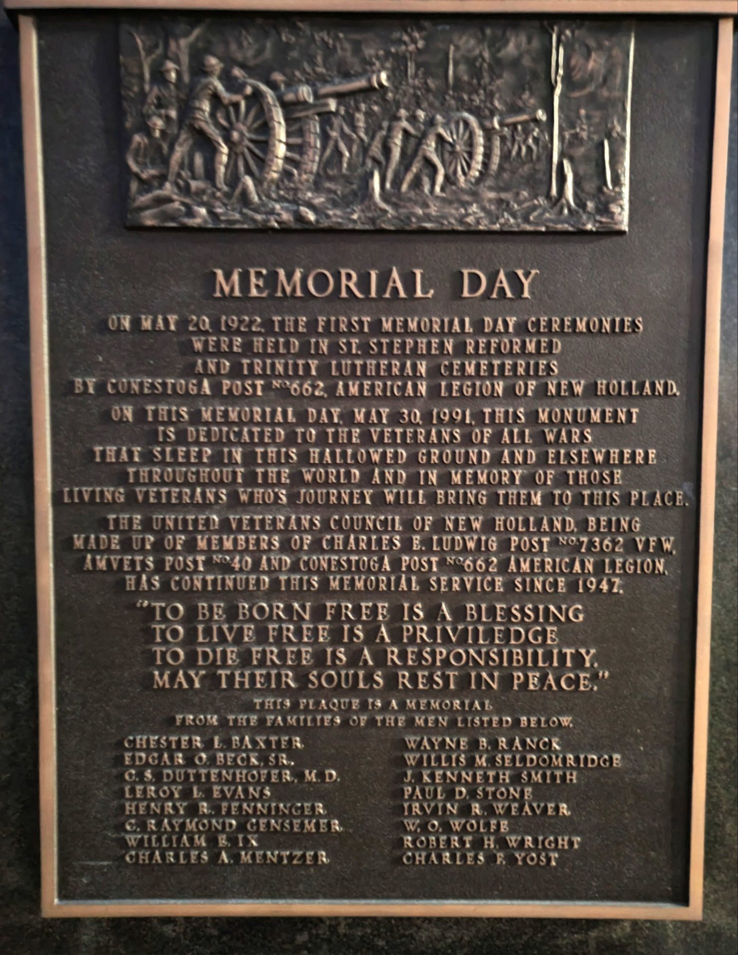 MEMORIAL DAY MAY 20, 1922 MEMORIAL PLAQUE