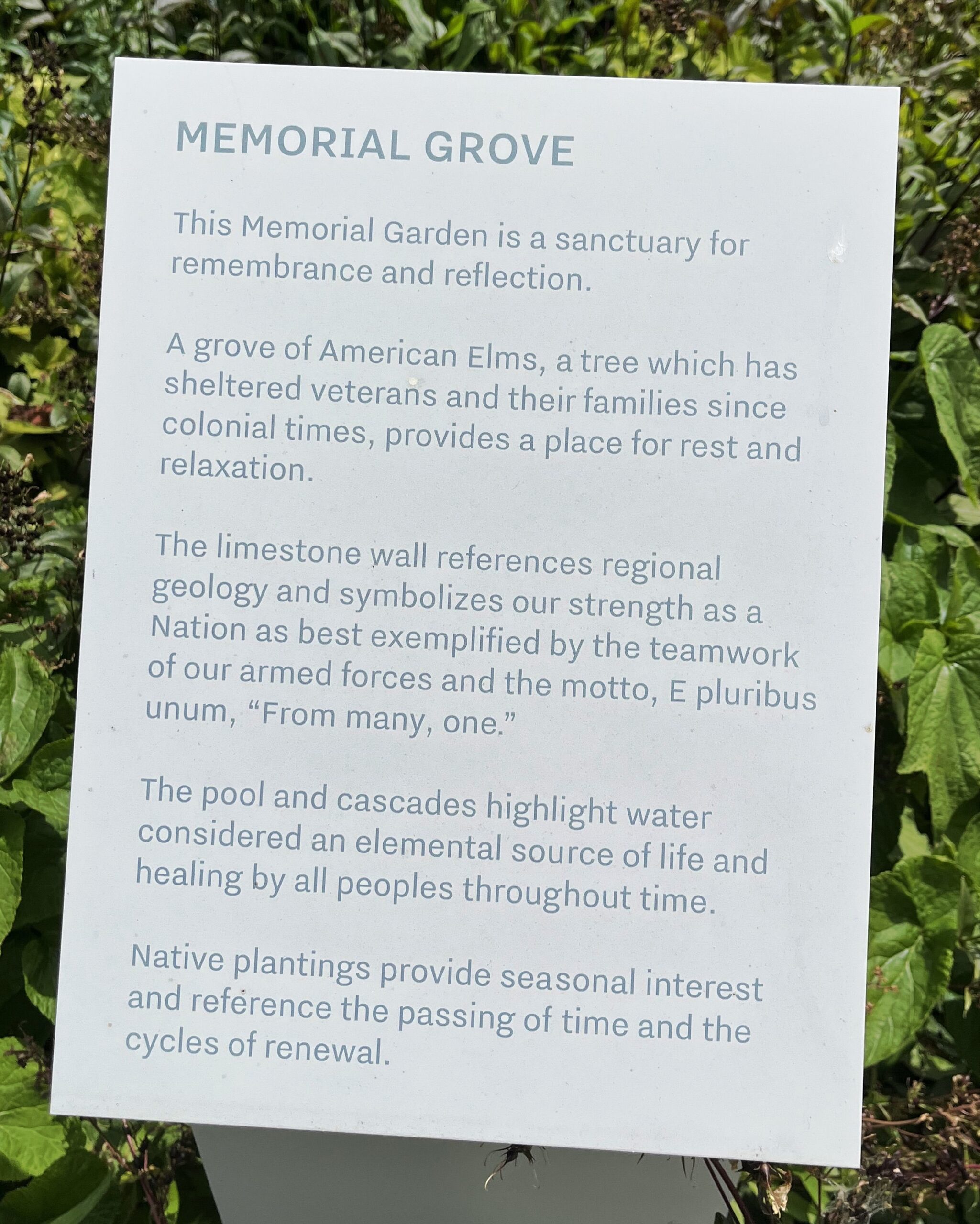 MEMORIAL GROVE PLAQUE
