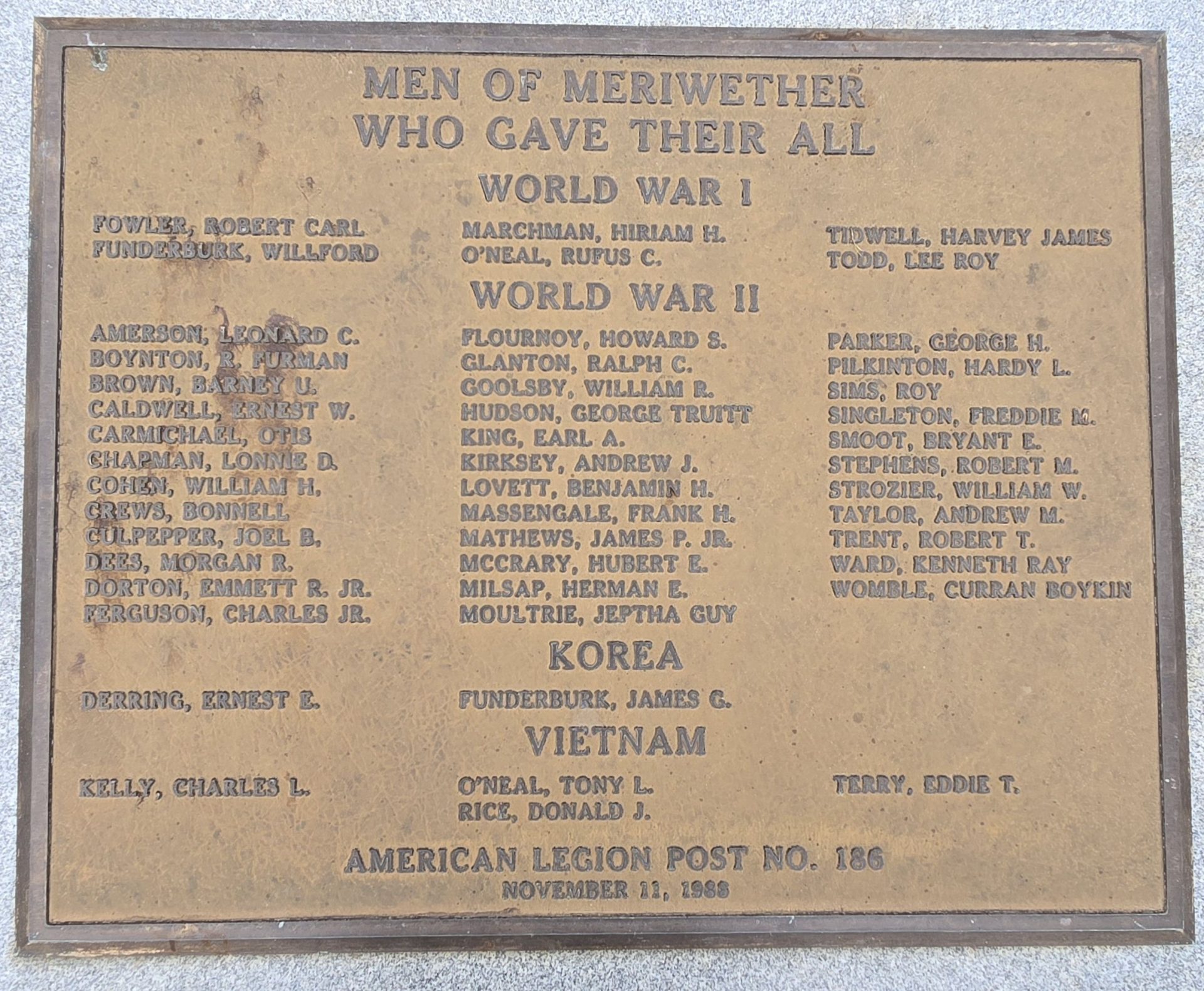 MEN OF MERIWETHER WHO GAVE THEIR ALL WAR MEMORIAL PLAQUE