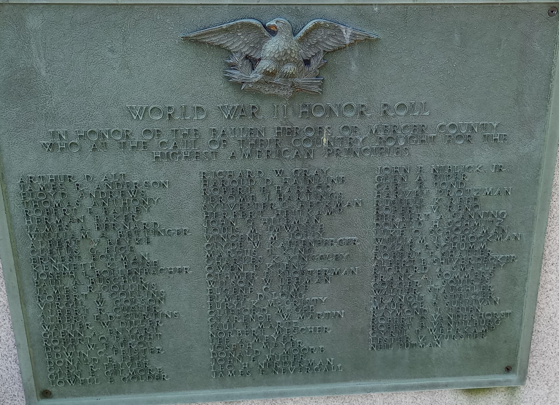 MERCER COUNTY WORLD WARS MEMORIAL PLAQUE B