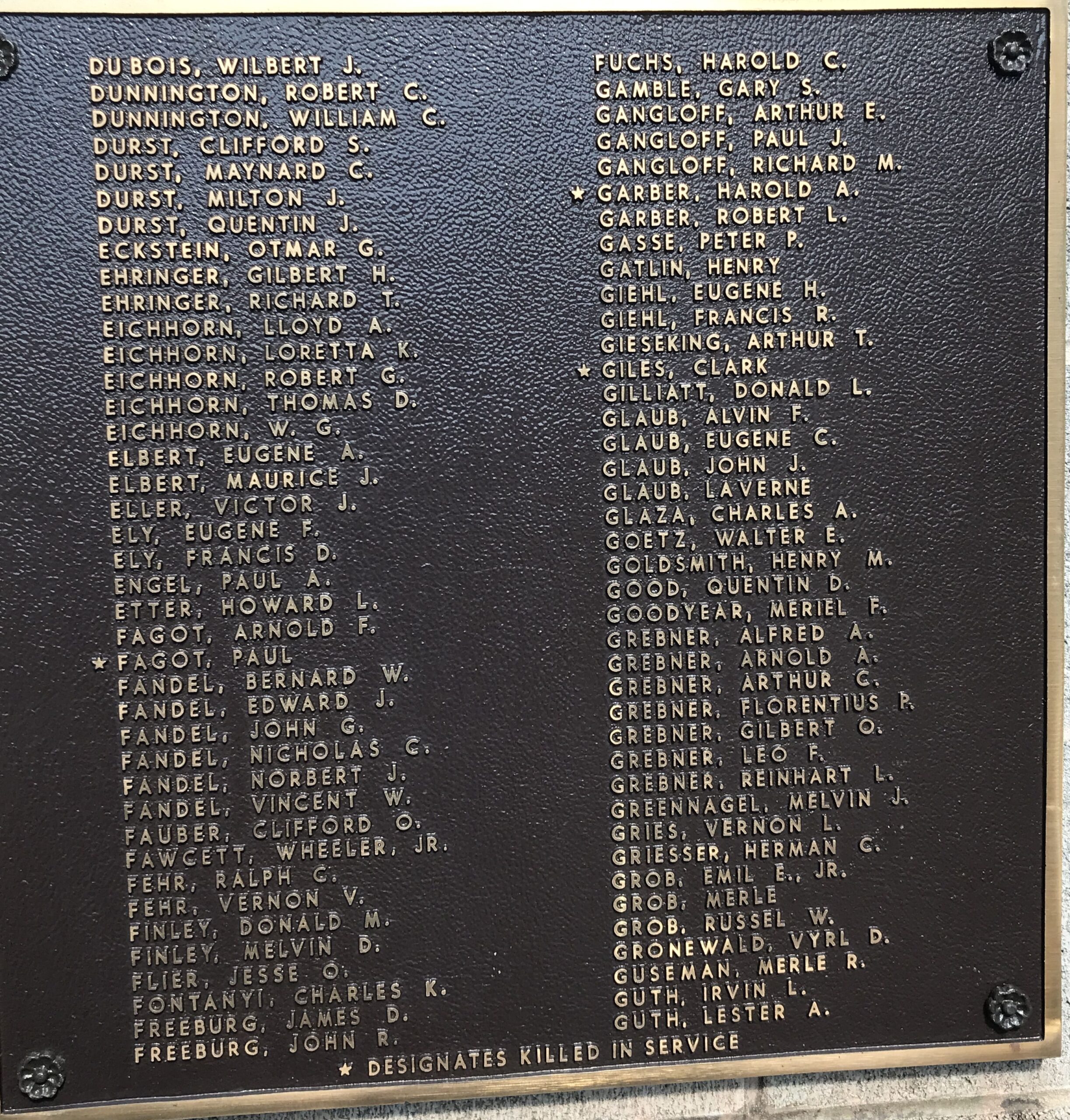 METAMORA HONOR ROLL MEMORIAL PLAQUE E