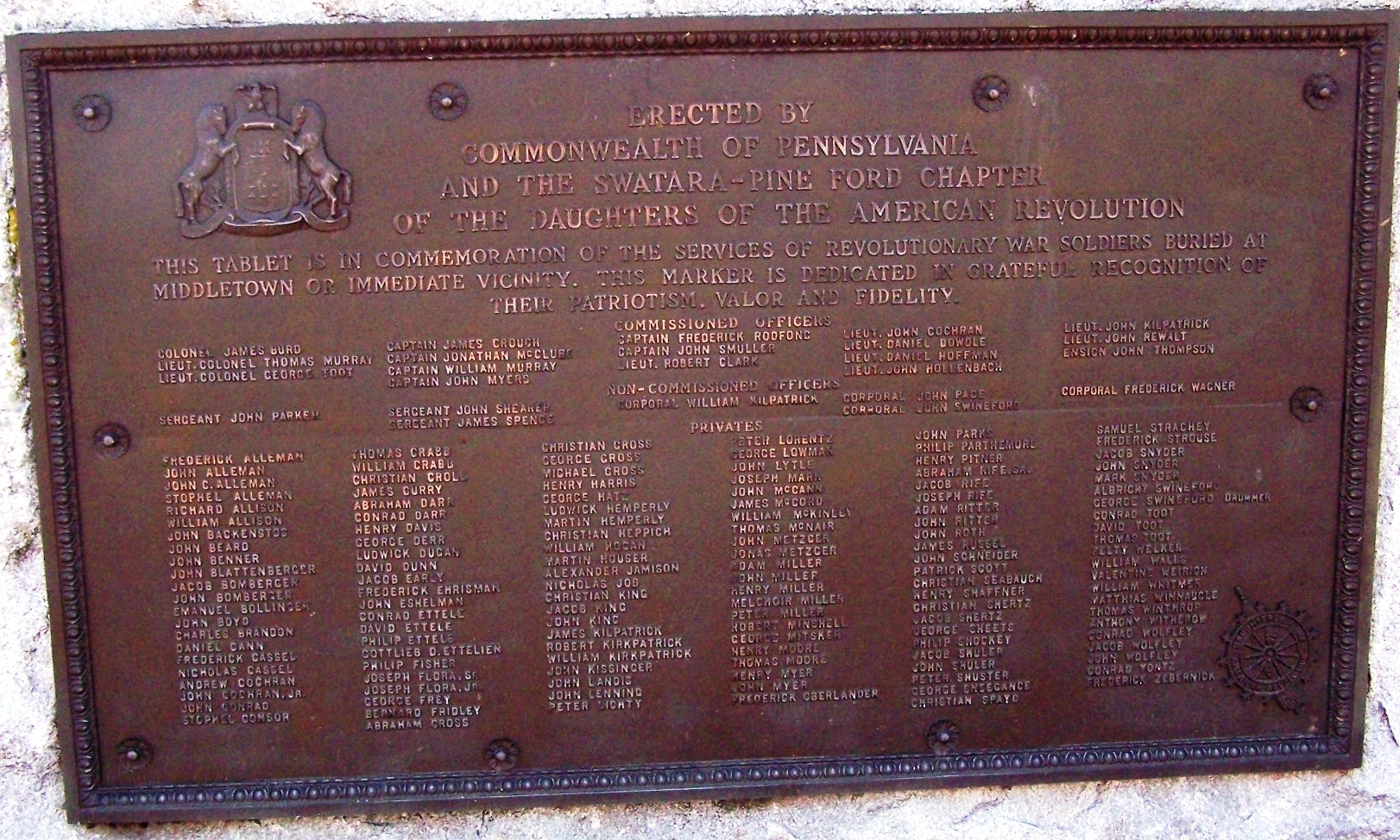 MIDDLETOWN COMMONWEALTH OF PENNSYLVANIA REVOLUTIONARY WAR SOLDERS MEMORIAL PLAQUE