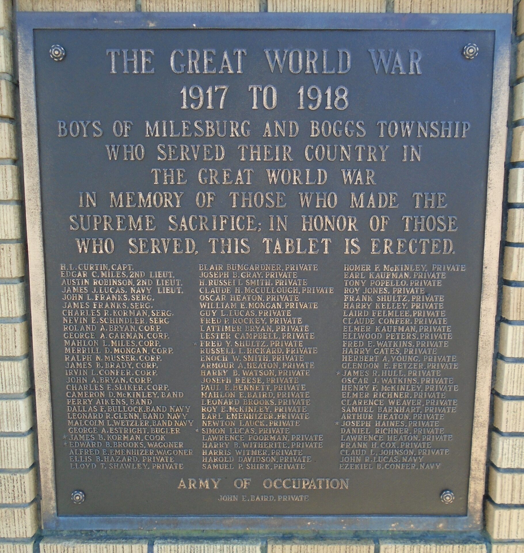 MILESBURG WAR VETERANS MEMORIAL PLAQUE D