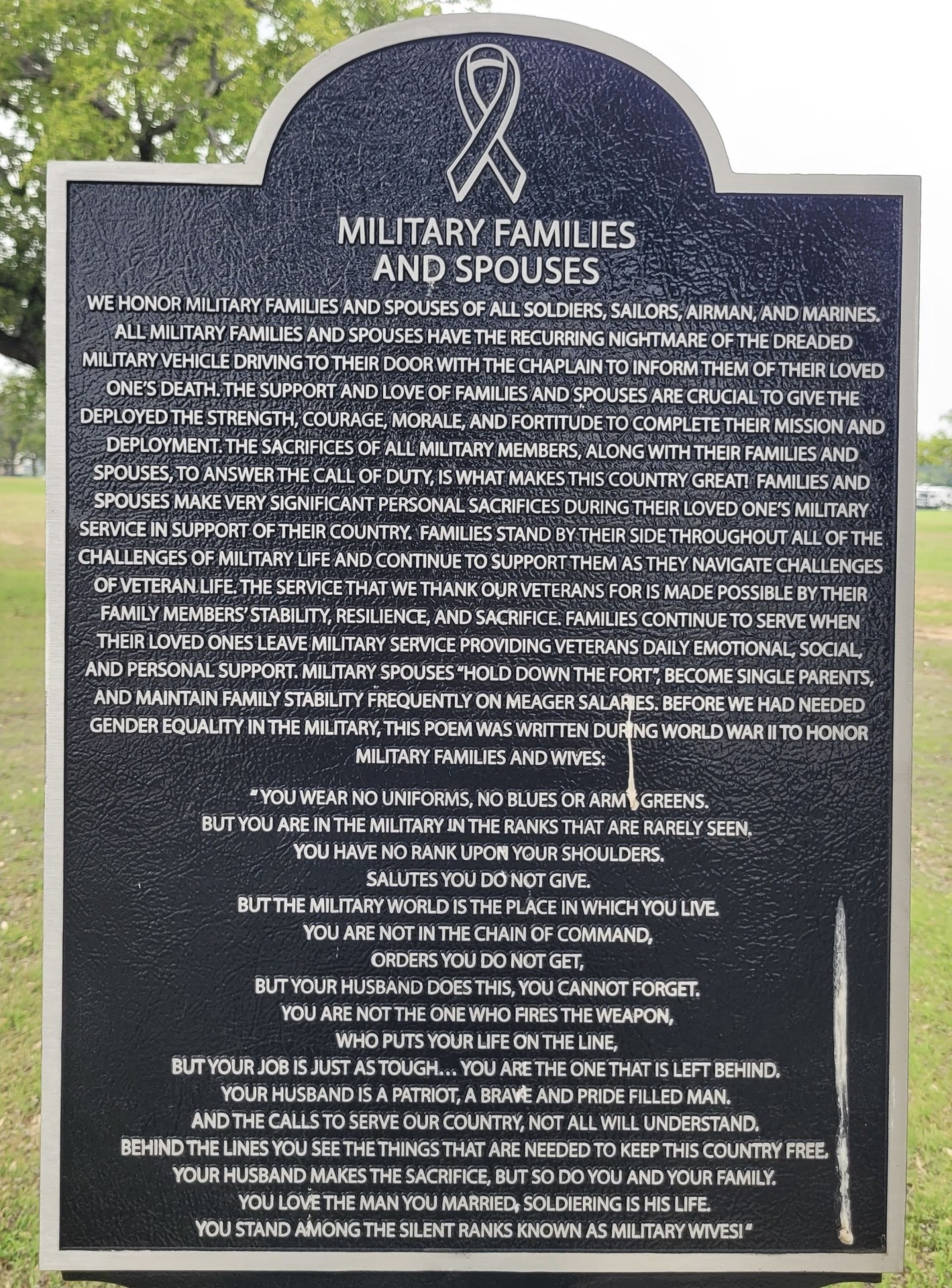 MILITARY FAMILIES AND SPOUSES MEMORIAL MARKER