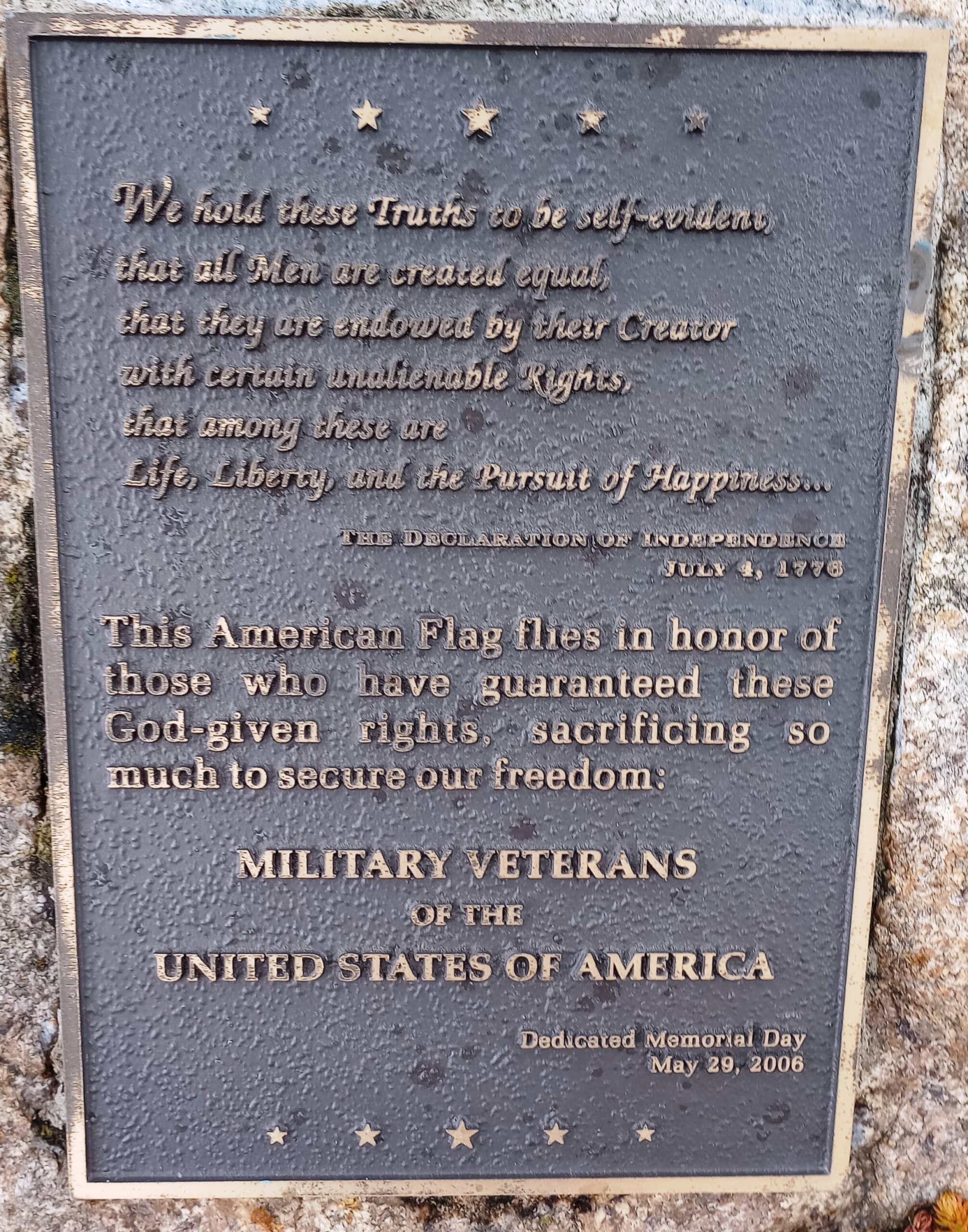 MILLITARY VETERANS OF THE UNITED STATES OF AMERICA WAR MEMORIAL PLAQUE