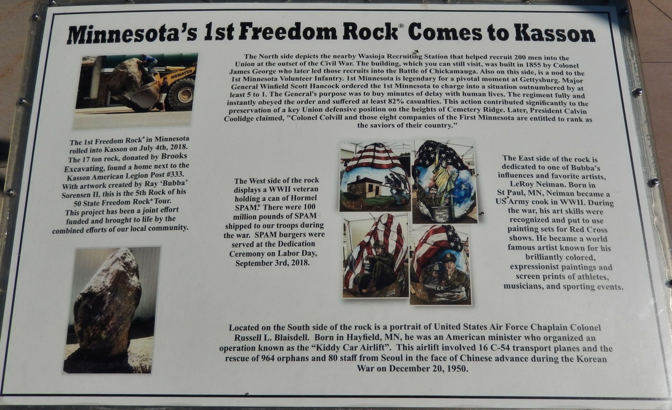 SEE ALSO-MINNESOTA’S 1ST FREEDOM ROCK COMES TO KASSON MEMORIAL SIDES A, B, C, & D