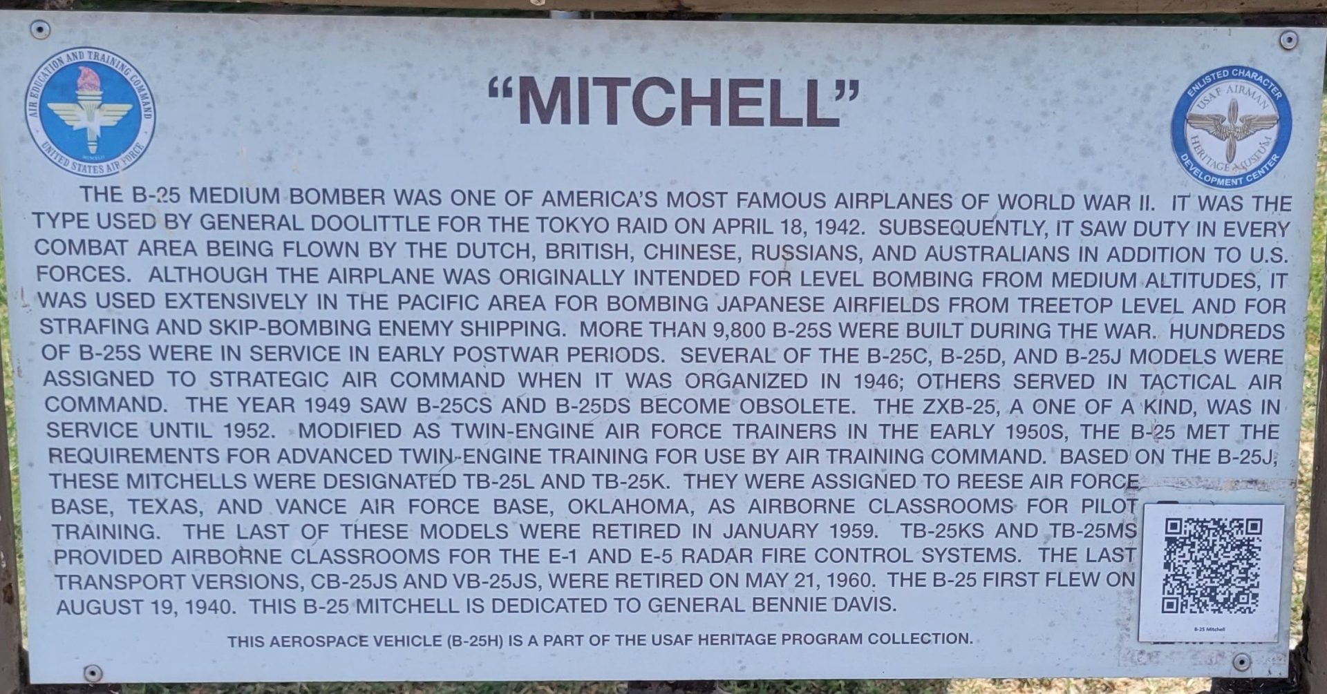 “MITCHELL” B-25H MEMORIAL AIRCRAFT PLAQUE