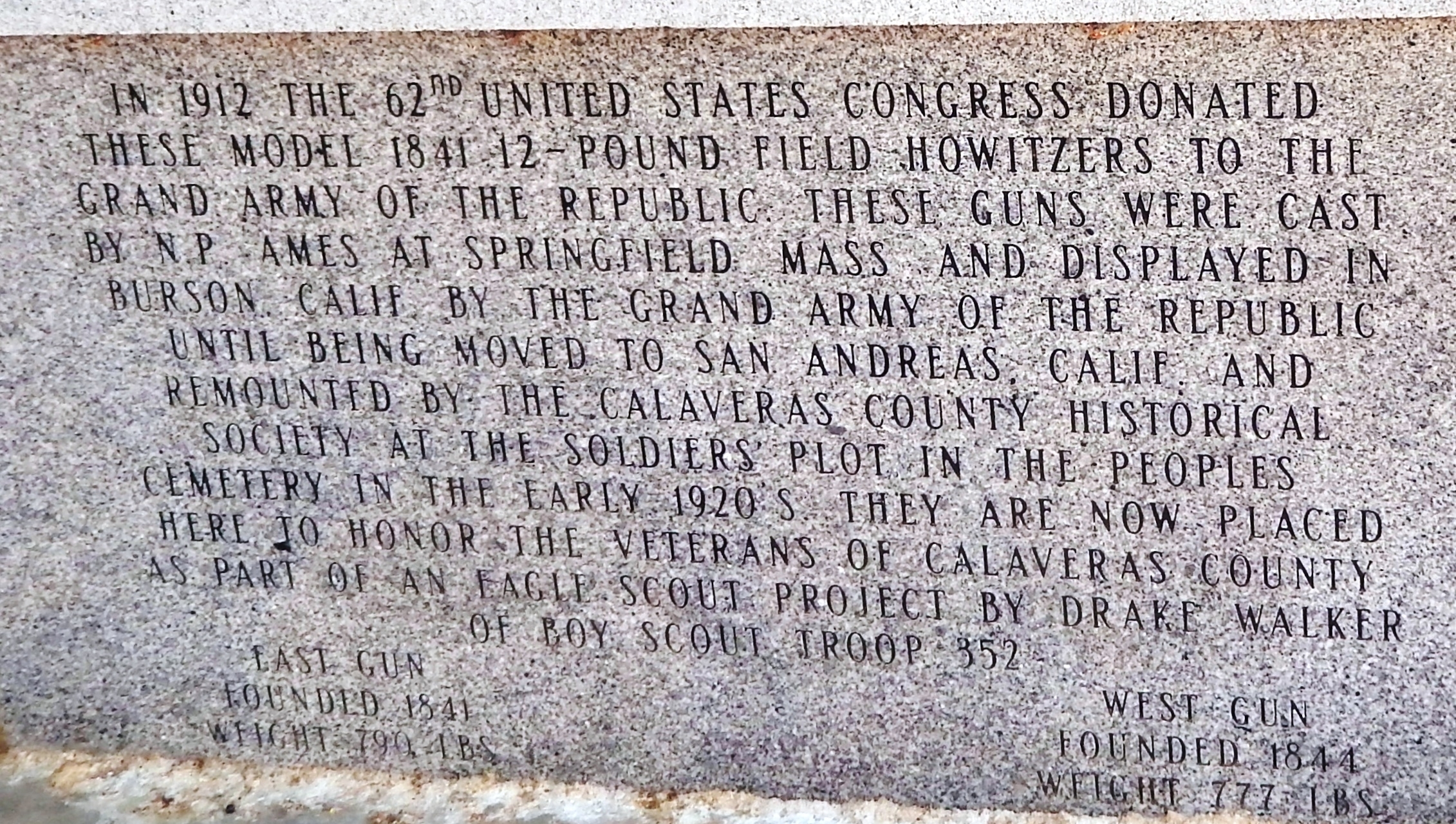 MODEL 1841 12-POUND FIELD HOWITZER MEMORIAL STONE
