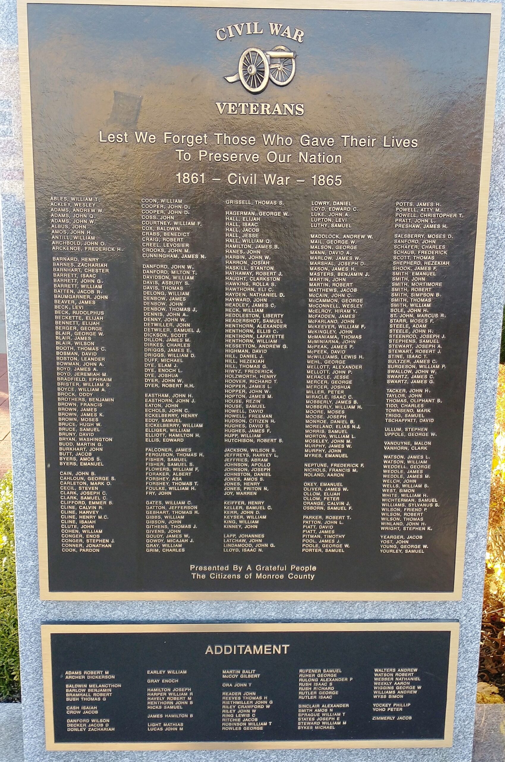 MONROE COUNTY CIVIL WAR VETERANS MEMORIAL PLAQUE