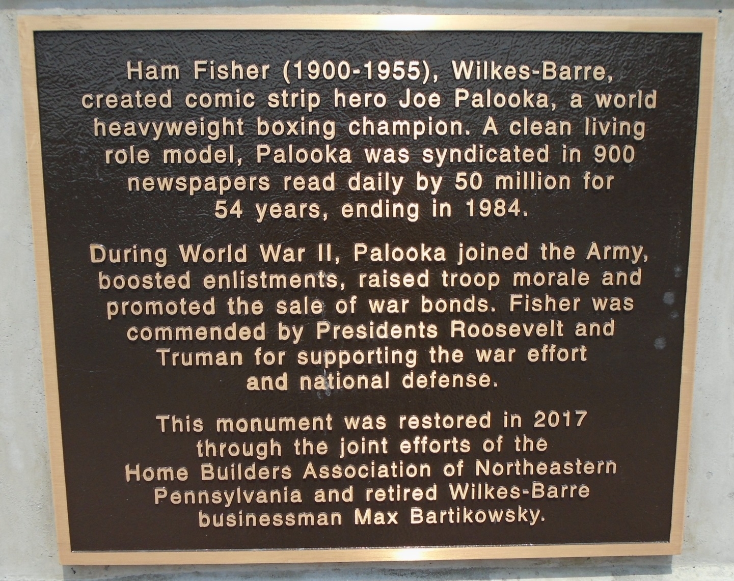 MT. JOE PALOOKA MEMORIAL PLAQUE