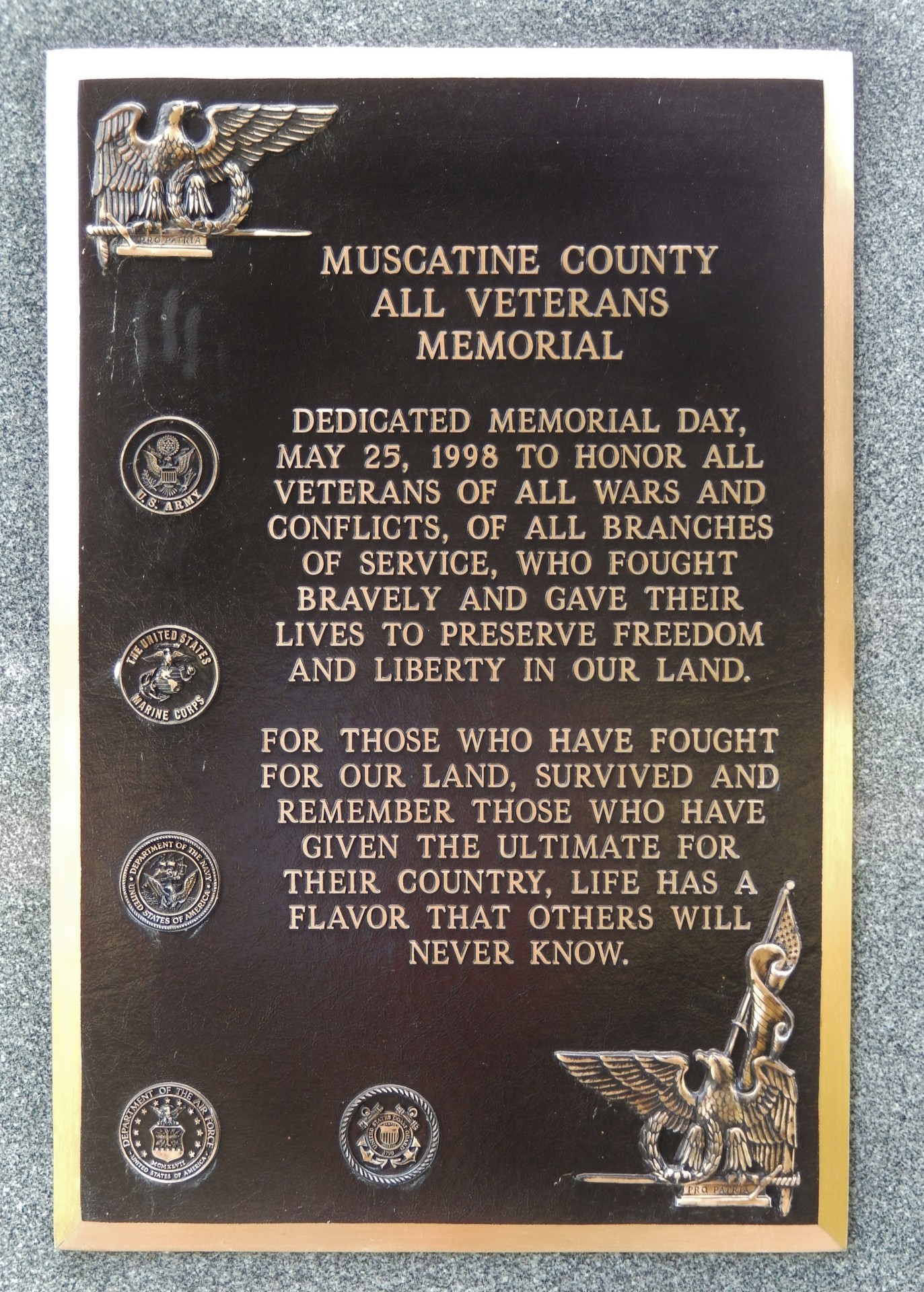 MUSCATINE COUNTY ALL BETERANS MEMORIAL PLAQUE B