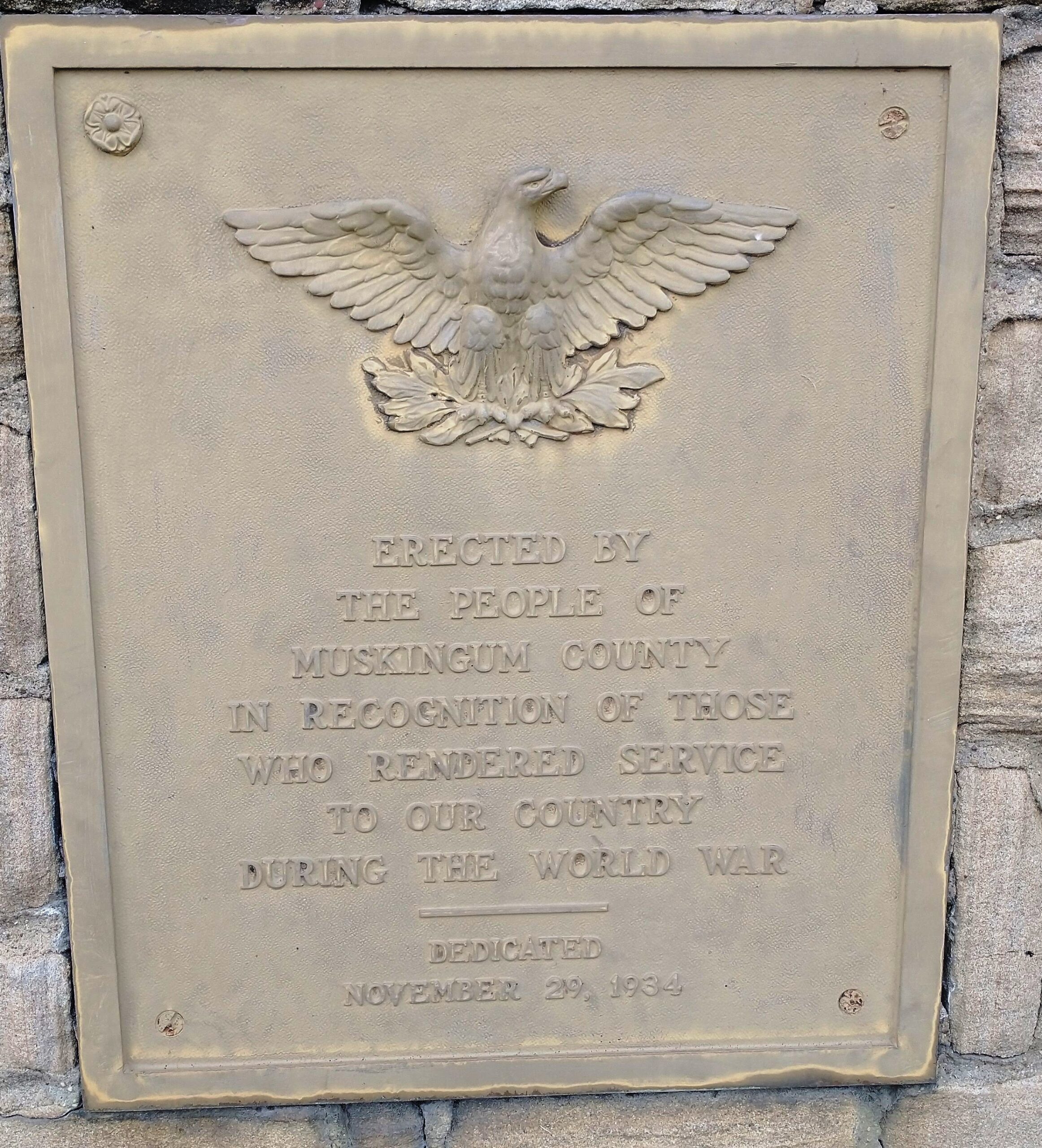 MUSKINGUM COUNTY WORLD WAR MEMORIAL PLAQUE